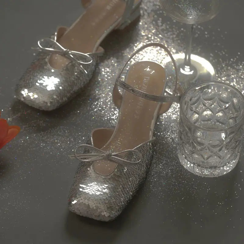 LIZAKOSHT - Ladies Shoes Square Heels Summer Crystal Footwear Closed Sandals for Women Bow Silver Free Shipping and Low Price Designer