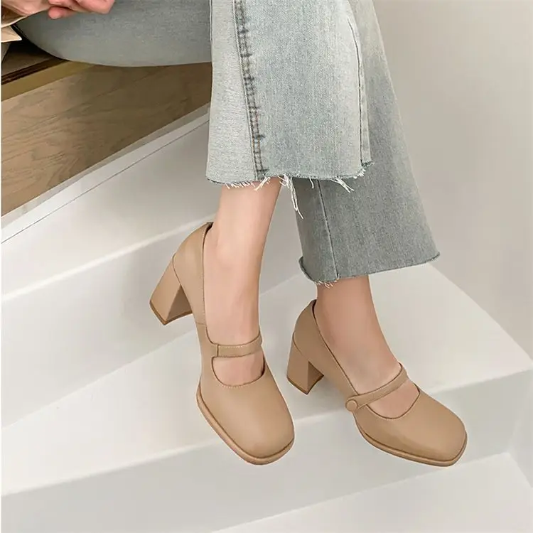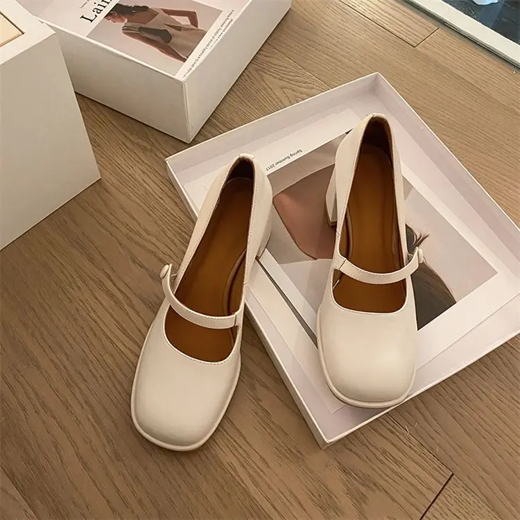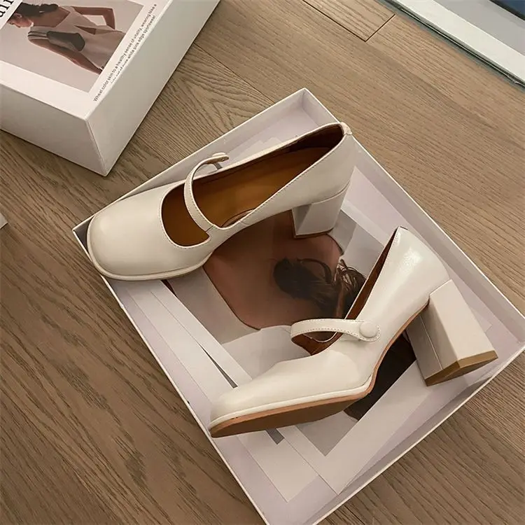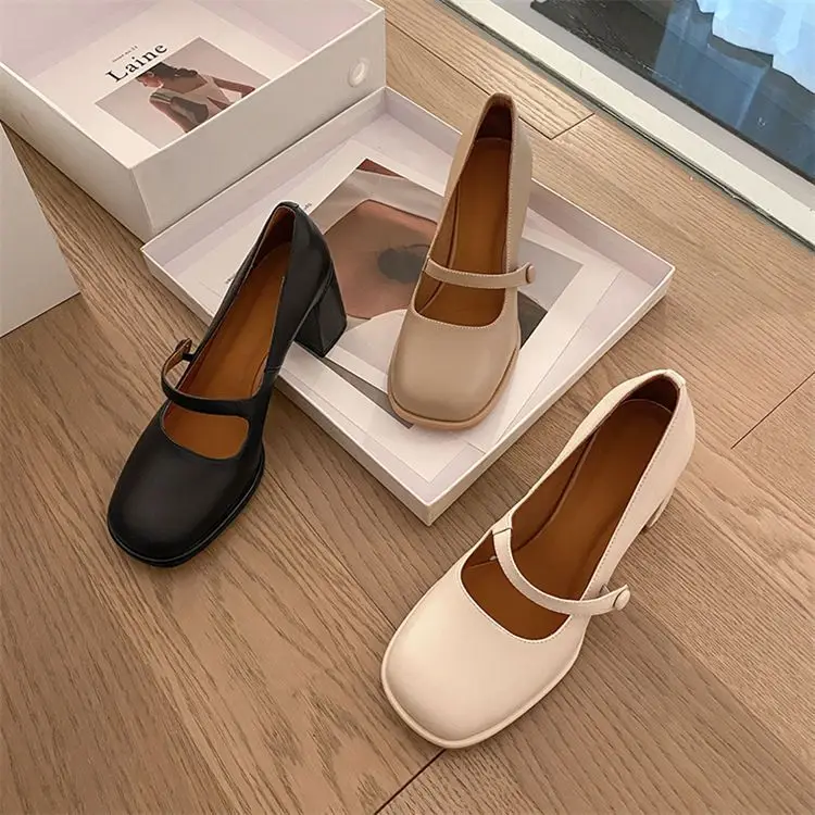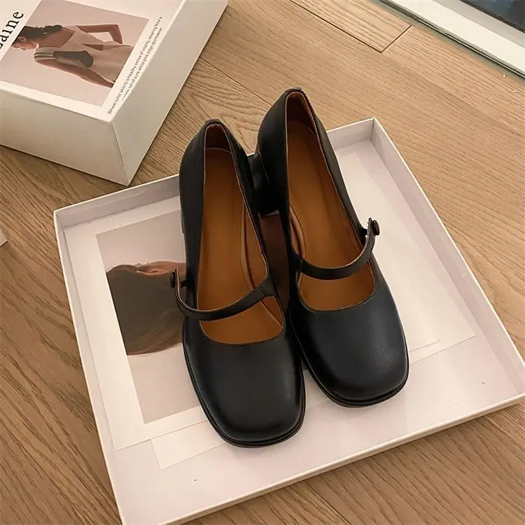 LIZAKOSHT - Ladies Summer Footwear Pumps Gothic Shoes for Women Mary Jane on Heeled Black Square Heels Japanese Style Lolita High Toe E