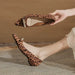 LIZAKOSHT - Leopard Print Flat Mules Pumps Women Square Toe Designer Shoes Women Low Heel Casual Shoes Shallow Comfort Pearl Bow Women Shoes