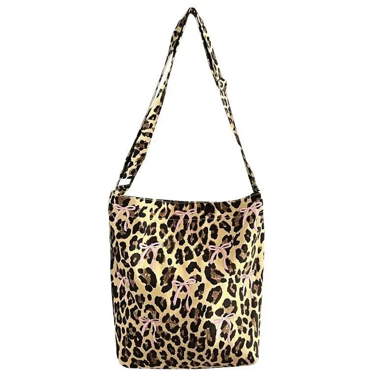 LIZAKOSHT - Leopard Print New Bow Embroidered Crossbody Bag Commuting Canvas Shoulder Bags Women's Fashion