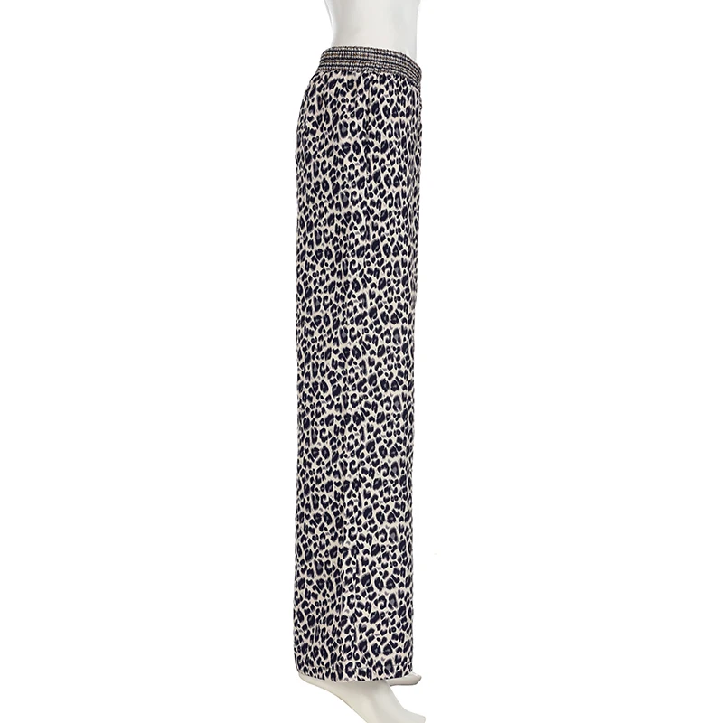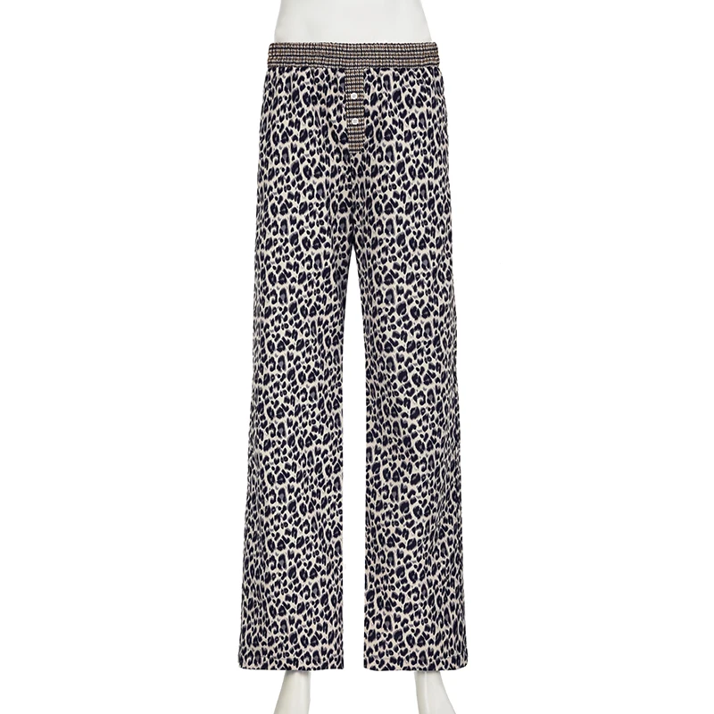LIZAKOSHT  -  Leopard Print Patchwork Straight Pants Elastic Waist Fashion Harajuku Trousers Aesthetic 2000s Casual Baggy Bottom