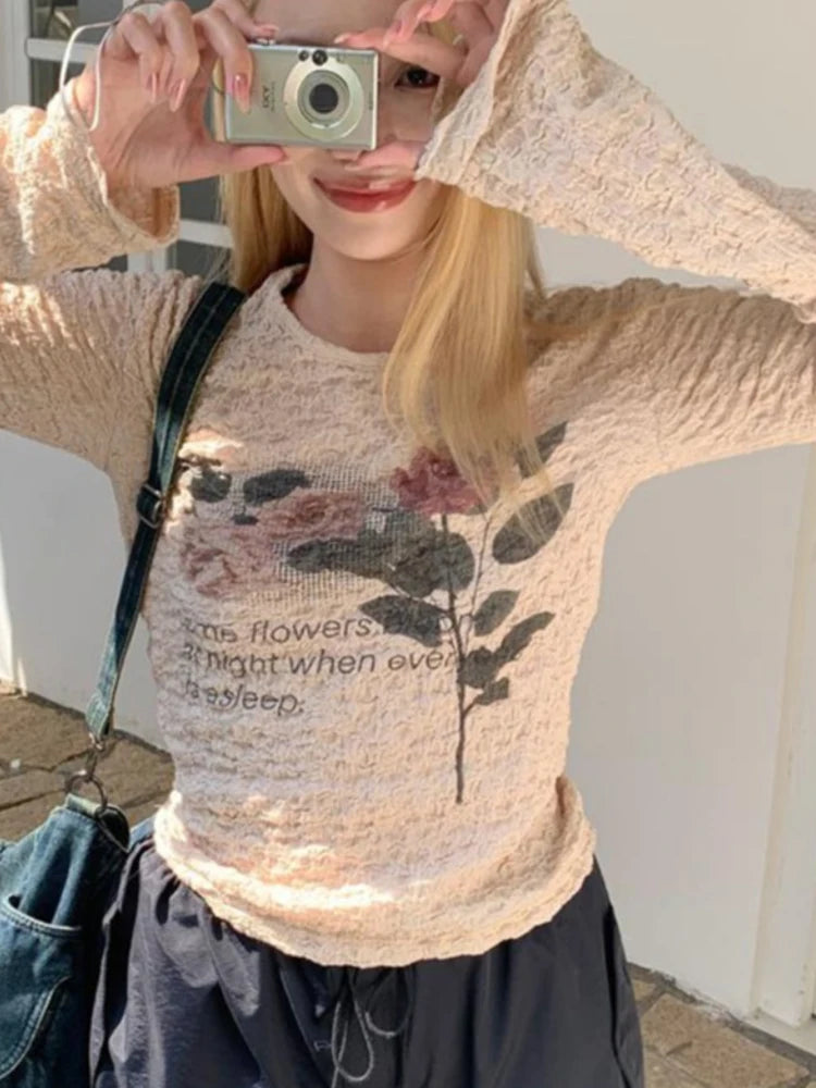 LIZAKOSHT - Letter Spring Auturm Vintage T Shirt Women Long Sleeve Crop Tops Y2k Print Tshirts American Retro Tee Tops Outfits