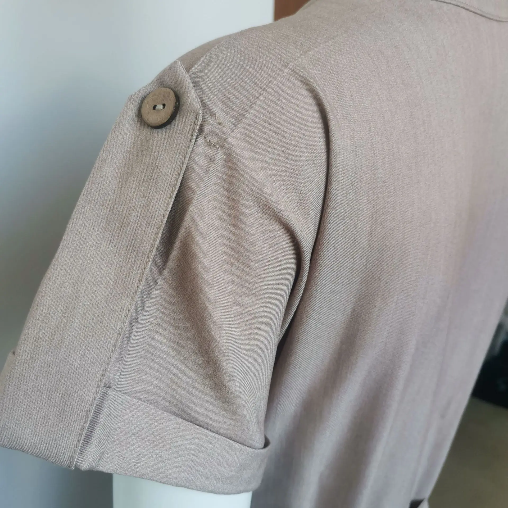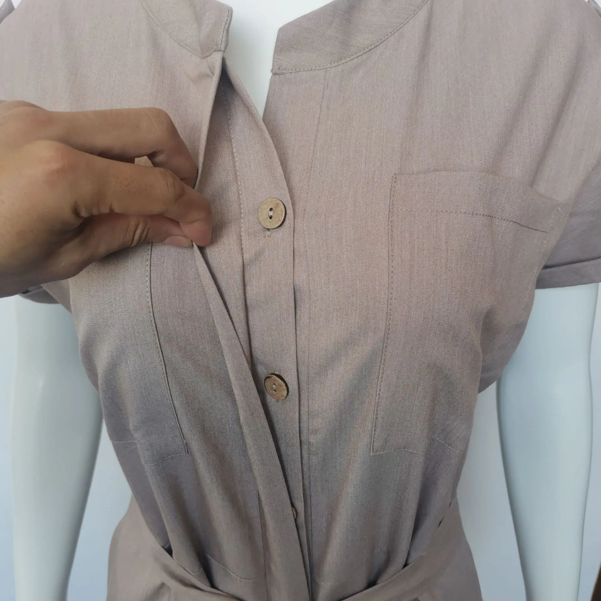LIZAKOSHT - Linen Cotton Single-breasted Jumpsuit Large Pockets Summer Fashion New Lace Up Waist Solid Color Jumpsuit Women Loose Body Suit