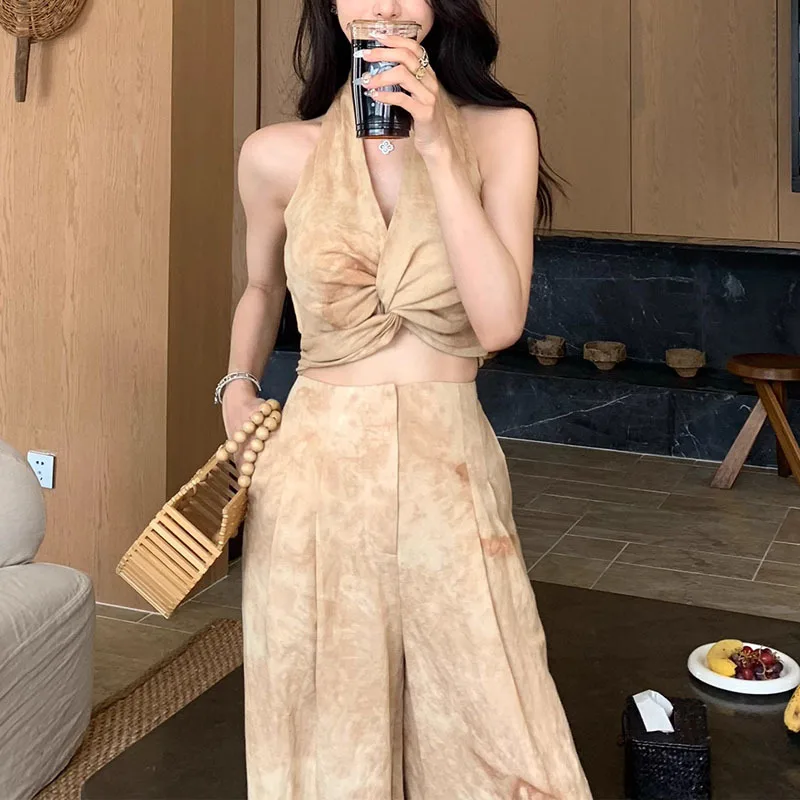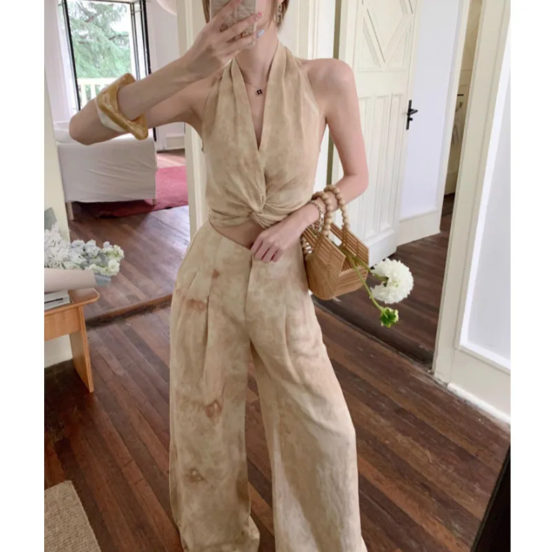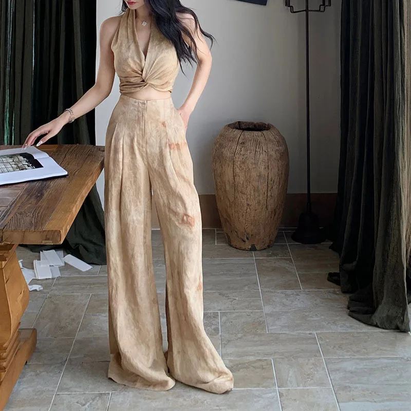 LIZAKOSHT - Linen Tie-Dye Sling/Trousers Fashion Two-Piece Suit ensemble femme 2 pièces été 2 piece sets womens outfits shoes
