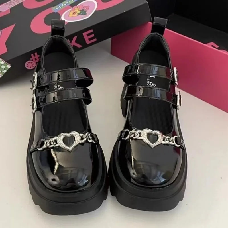 LIZAKOSHT - Lolita Shoes Women's Punk Platform Pumps Metal Chain Mary Jane Lolita Shoes Woman Japanese Patent Leather High Heels Gothic Shoe