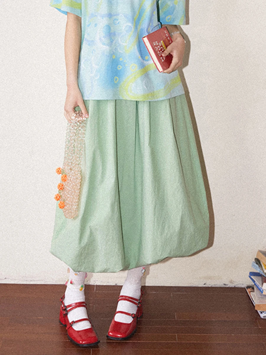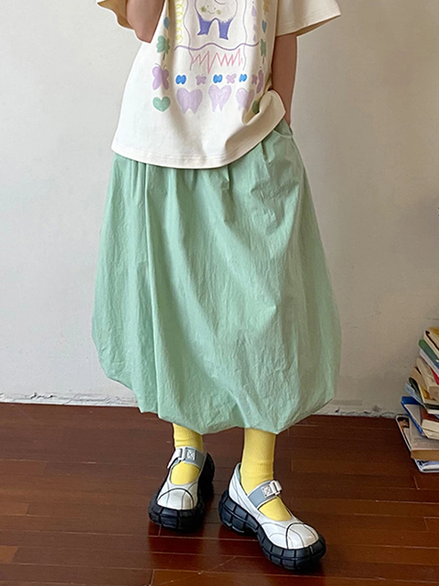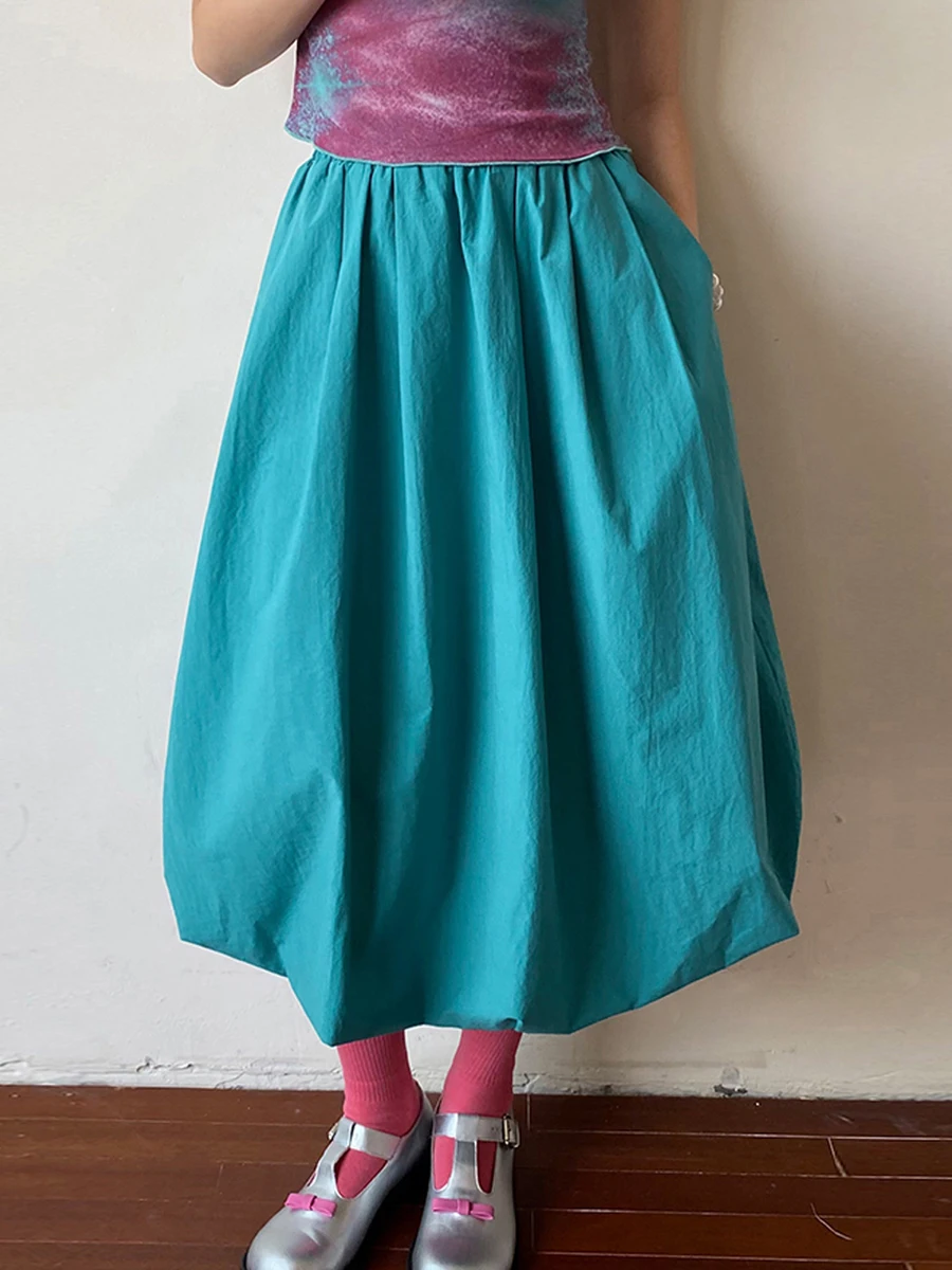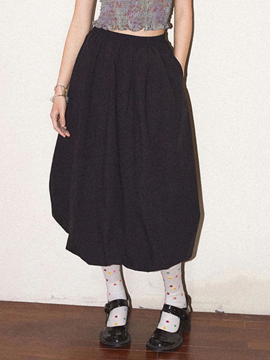 LIZAKOSHT - Long Skirt Women Elegant Solid Elastic Waist A-line Vintage Korean Fashion Loose Balloon Maxi Skirt Casual Y2K Streetwear