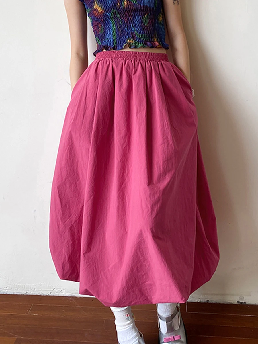 LIZAKOSHT  -  Long Skirt Women Elegant Solid Elastic Waist A-line Vintage Korean Fashion Loose Balloon Maxi Skirt Casual Y2K Streetwear