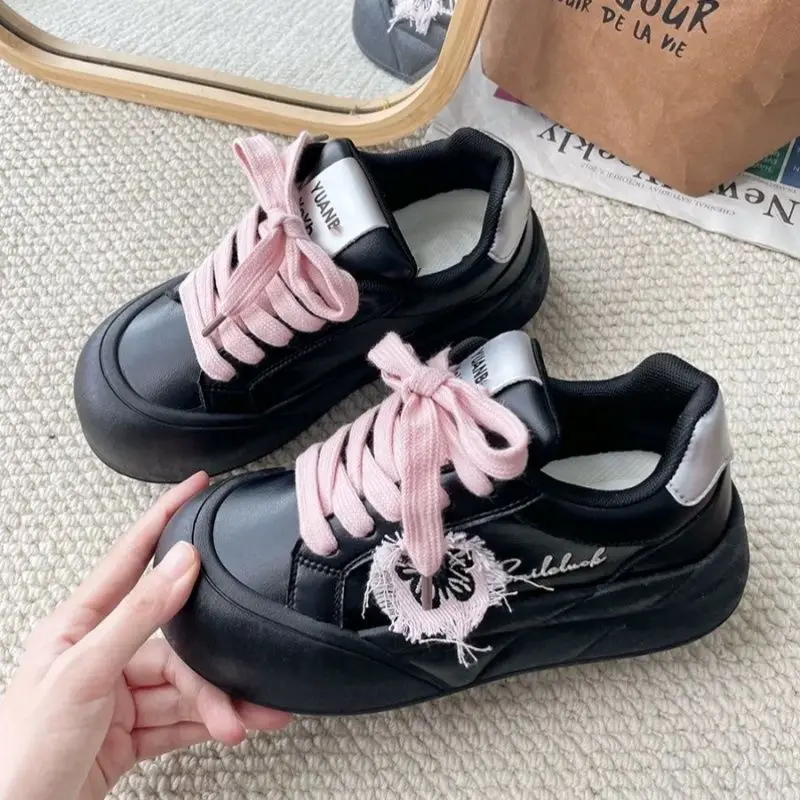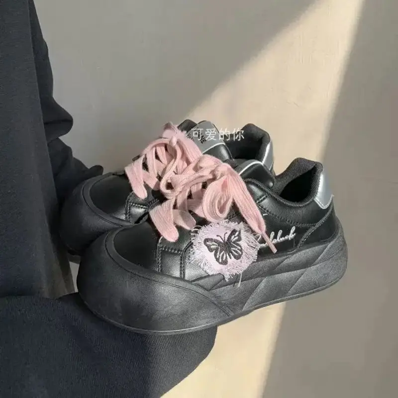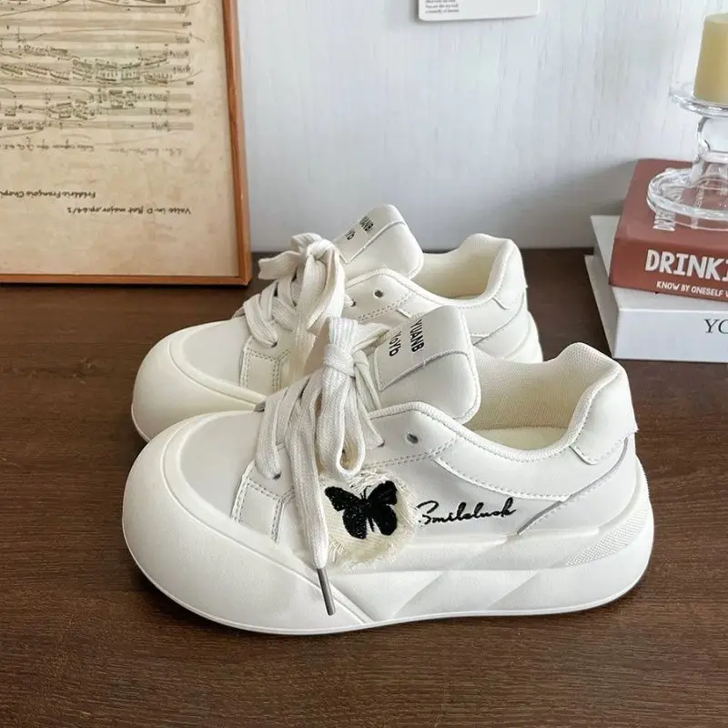 LIZAKOSHT - Lovely Sneakers Women Butterfly Print Versatile Lace Up Casual Shoes Thick Bottom Increase Round Toe Trainers Women