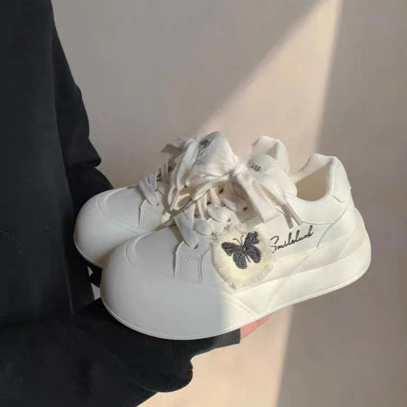 LIZAKOSHT  -  Lovely Sneakers Women Butterfly Print Versatile Lace Up Casual Shoes Thick Bottom Increase Round Toe Trainers Women