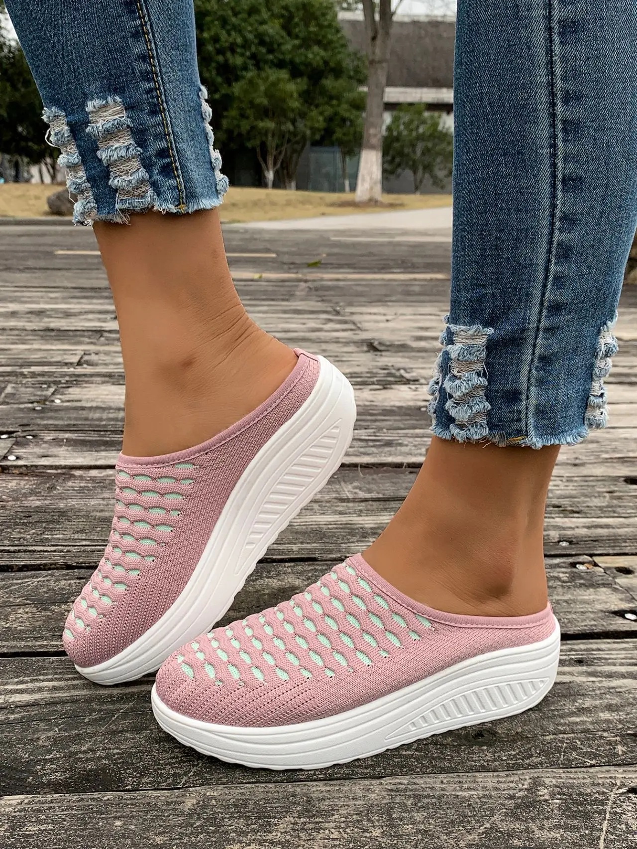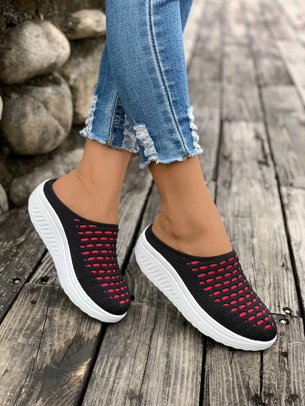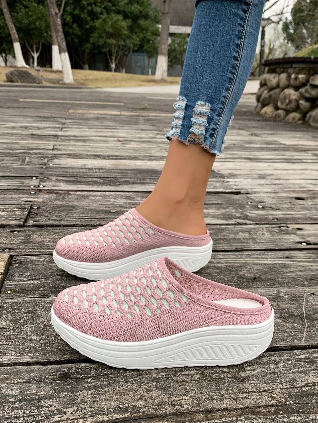 LIZAKOSHT  -  Low Shoes Woman  Cover Toe Massage Slippers House Rome Cotton Fabric Hoof Heels Rubber Slides Shoes Low Home Slippers Women'
