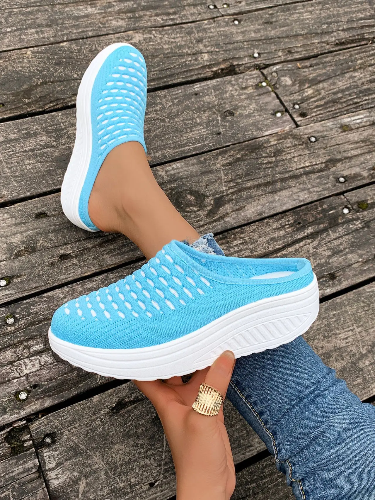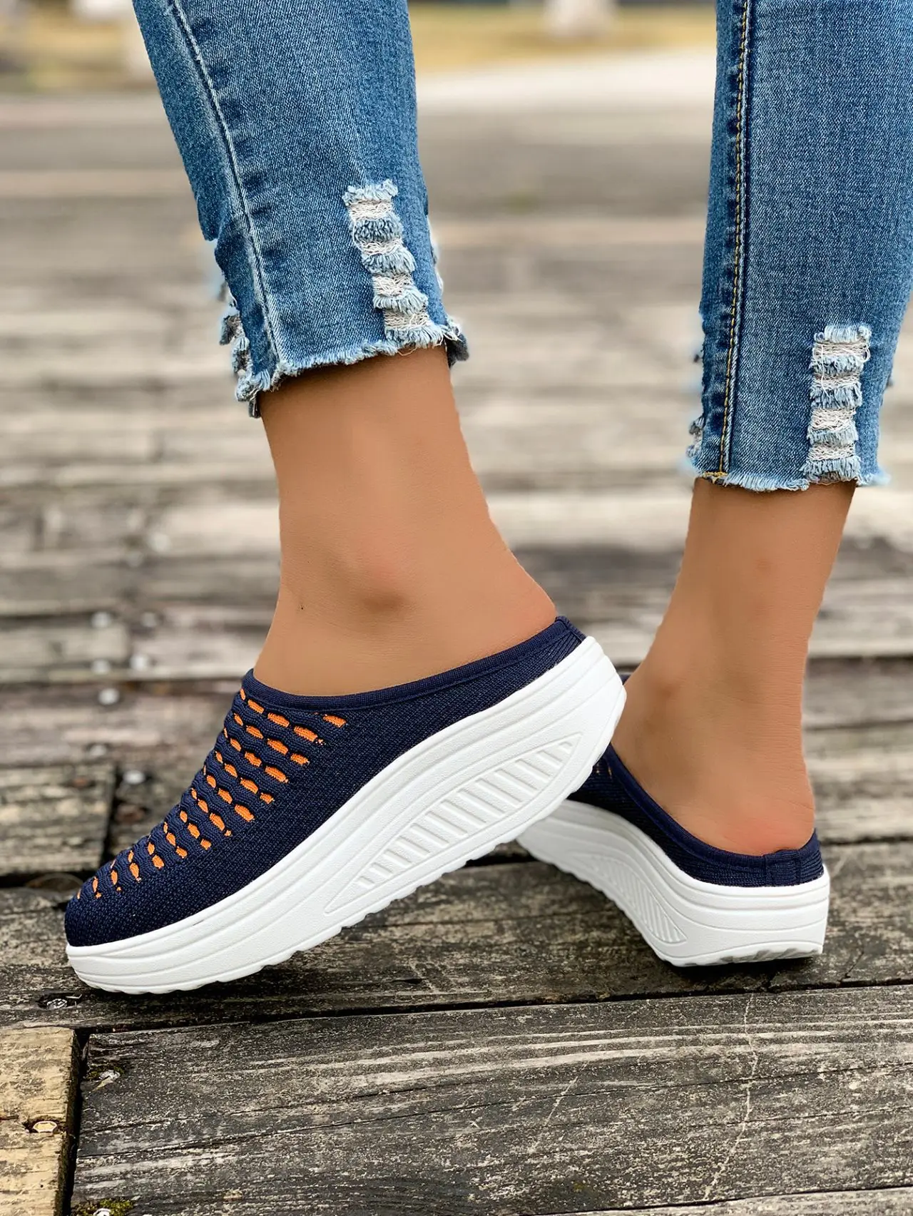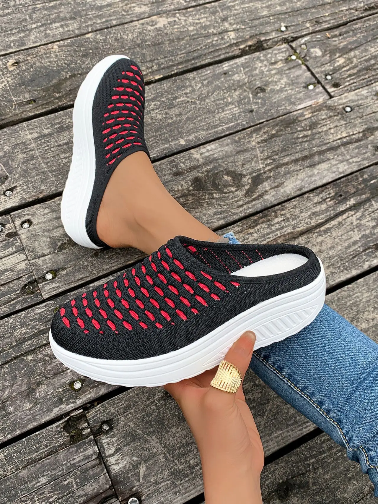 LIZAKOSHT  -  Low Shoes Woman  Cover Toe Massage Slippers House Rome Cotton Fabric Hoof Heels Rubber Slides Shoes Low Home Slippers Women'