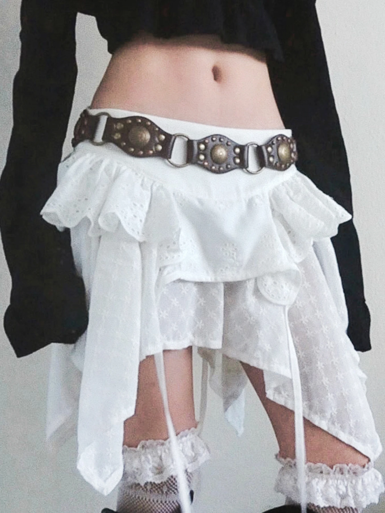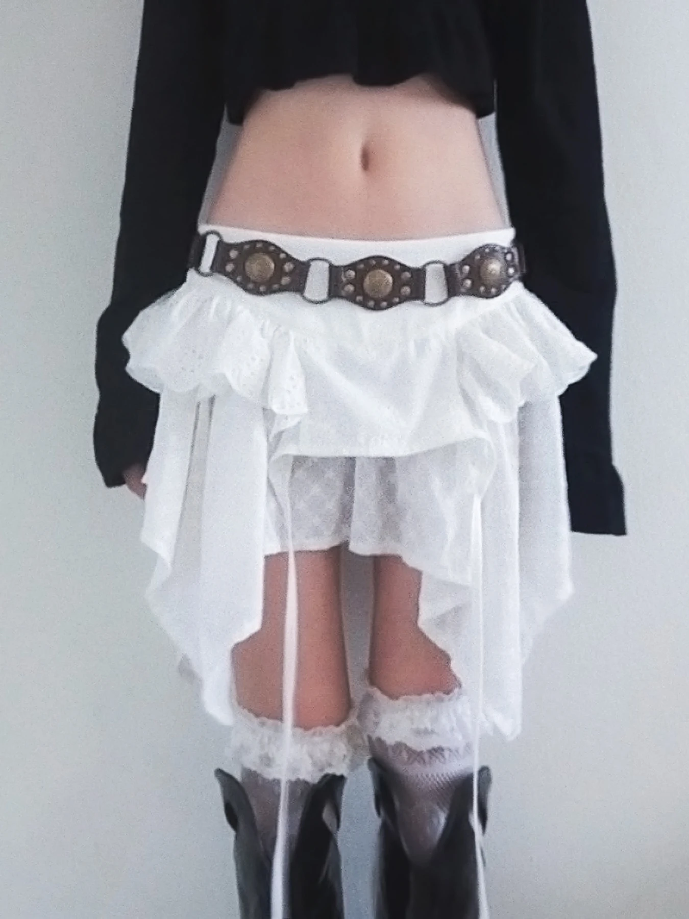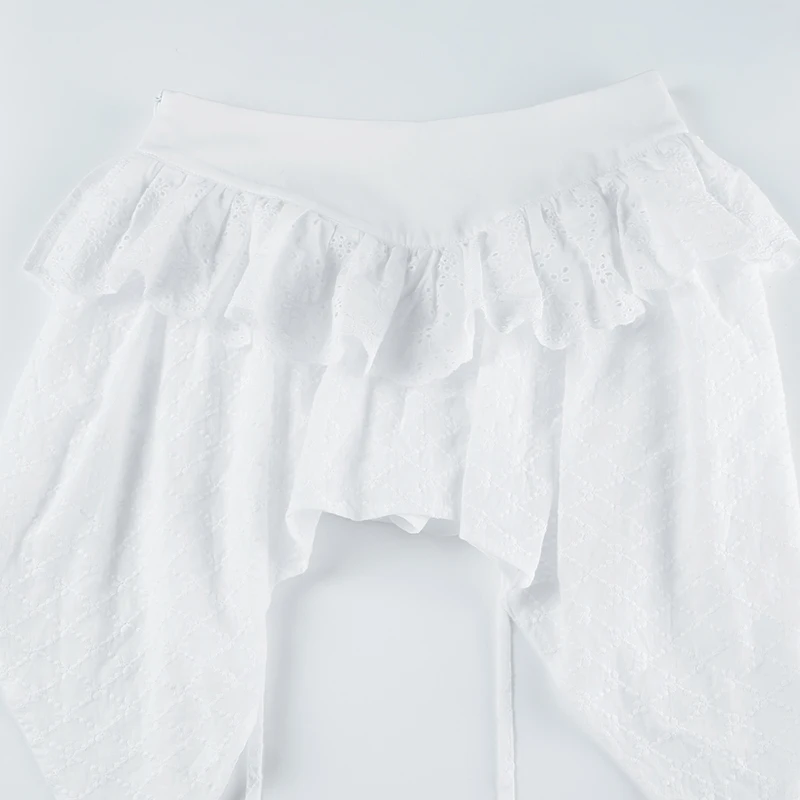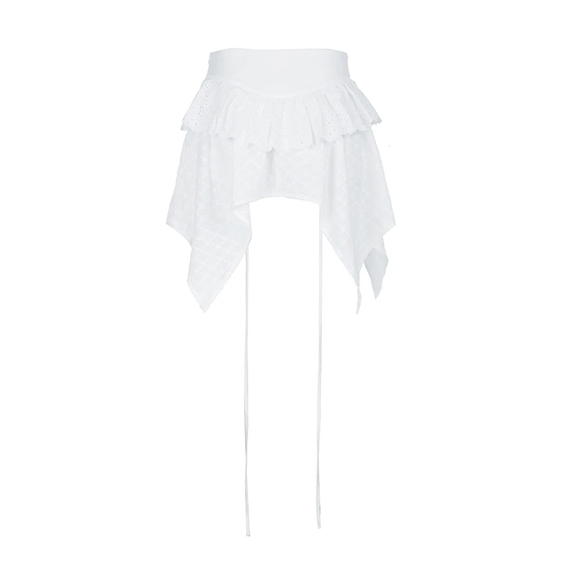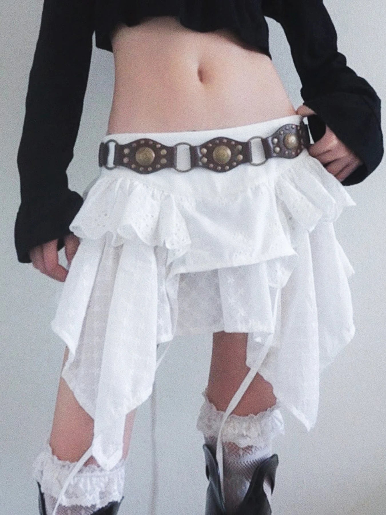 LIZAKOSHT - Lrregular Ruffle Lace Patchwork Mini Skirt Women y2k Streetwear Vintage Korean Casual White Tiered Layer Skirt Boho