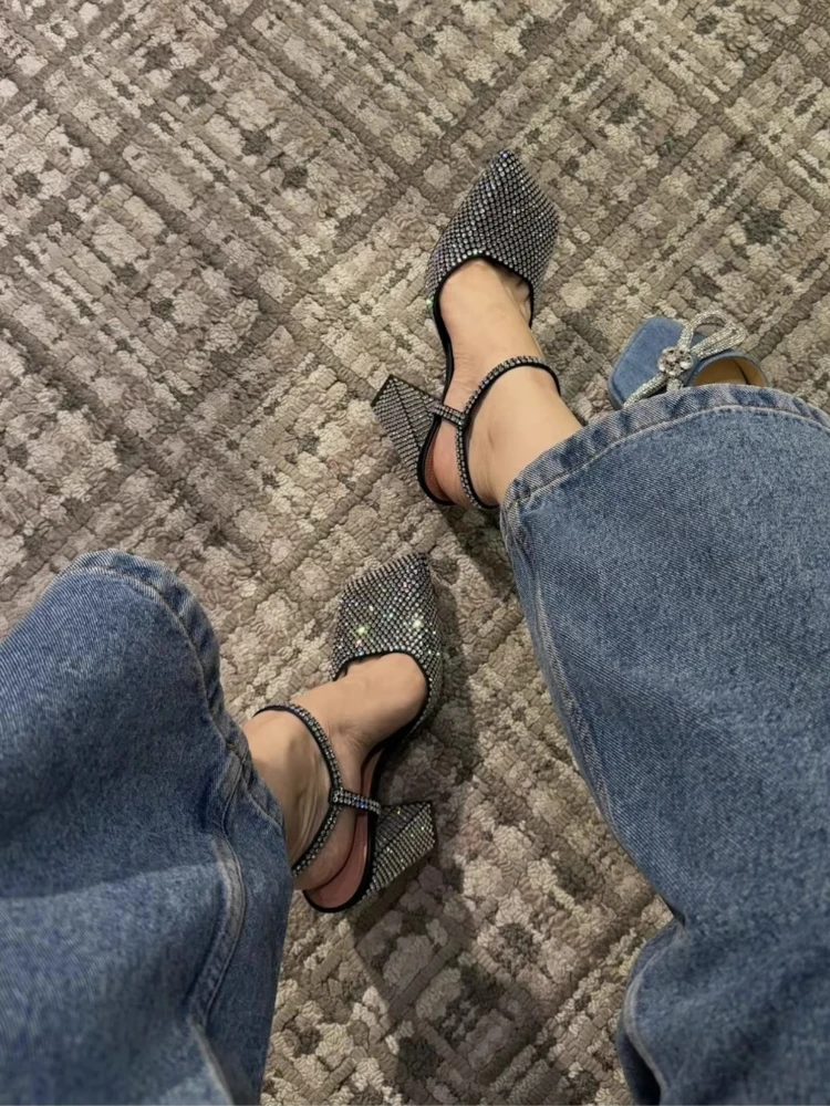 LIZAKOSHT  -  Luxury Crystal Super-high Heels Sandals Women's Square Toe Heeled Shoes 2025 Summer Trend Fad Chunky Pumps Slingback Lady Shoes