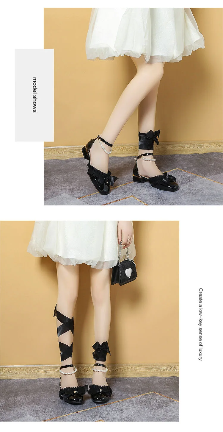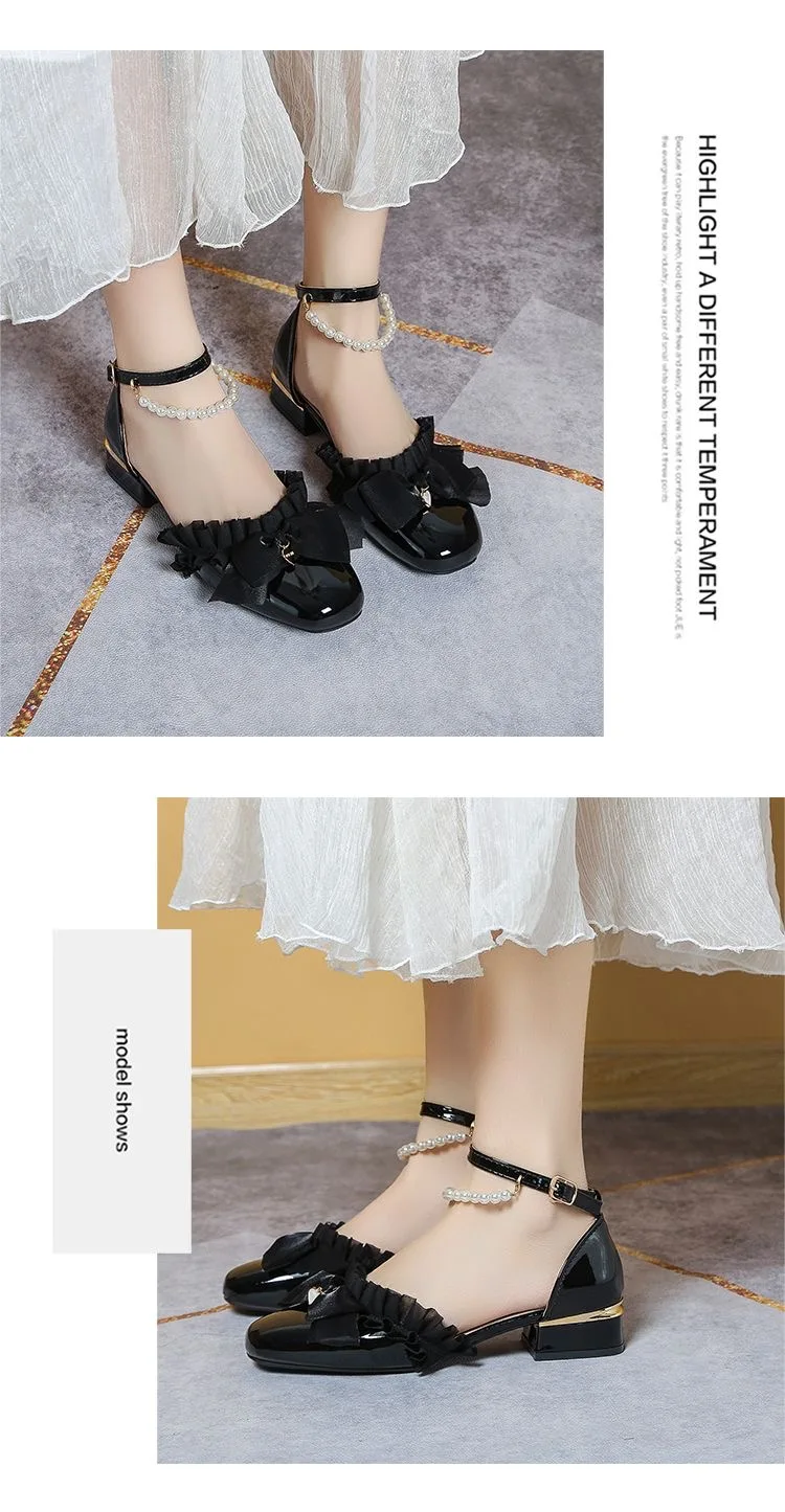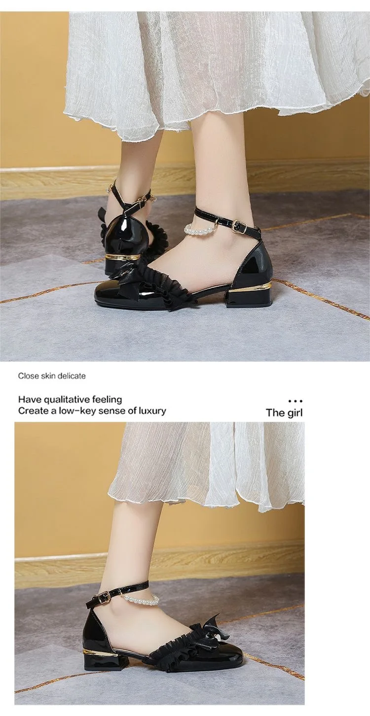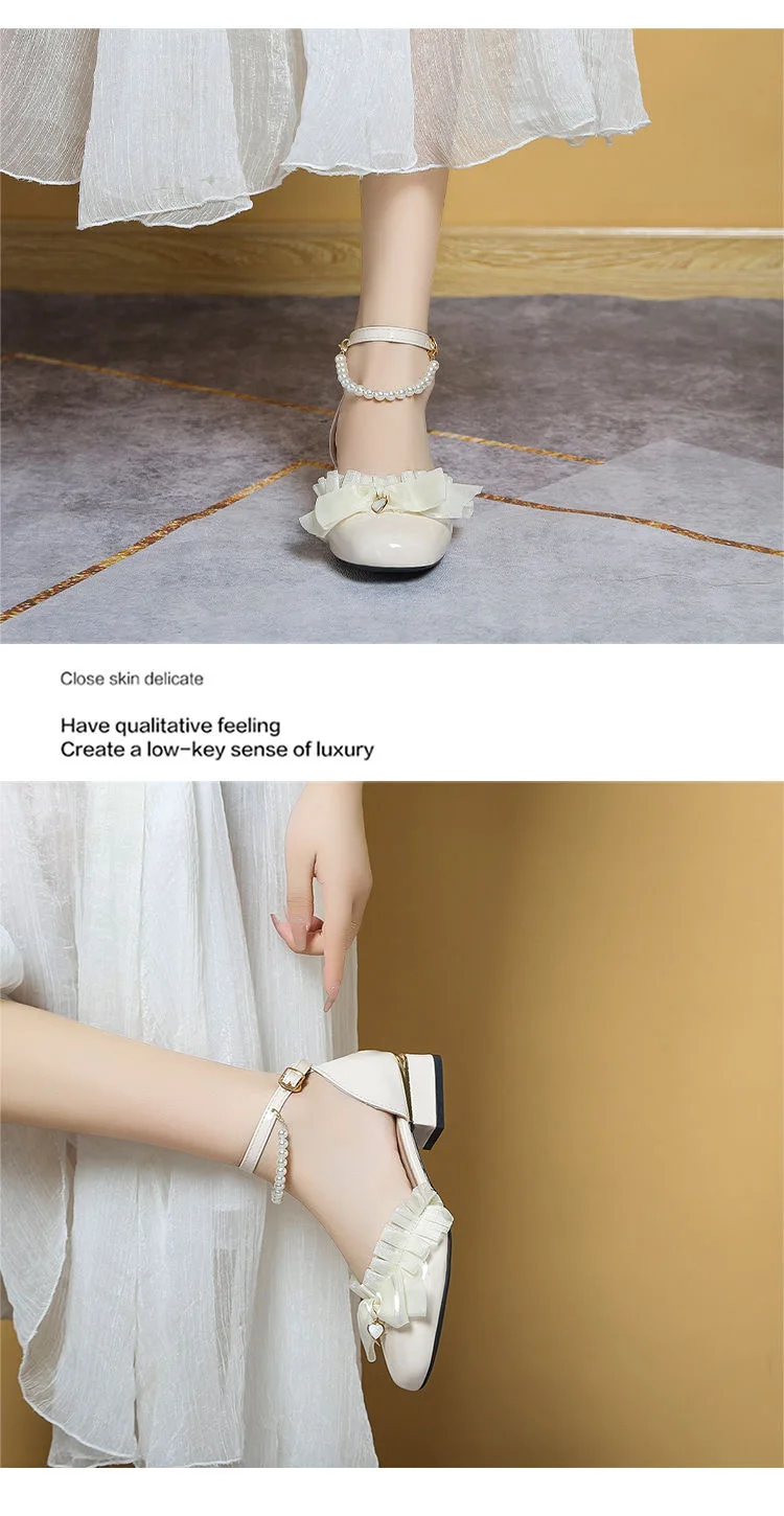 LIZAKOSHT - luxury evening shoes women flower heels Y2k low heel shoes 3.5 cm sling chunky shoes Lolita platform heels Mary Jane shoes
