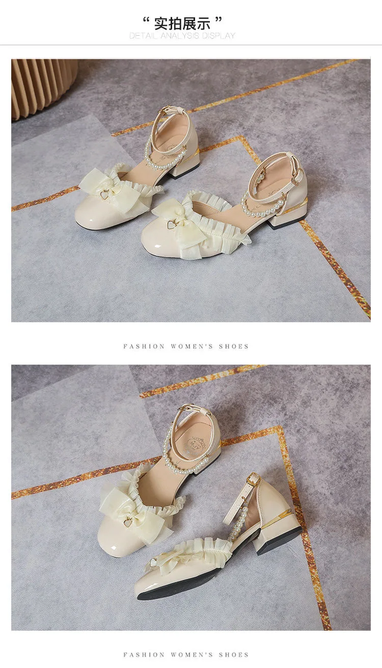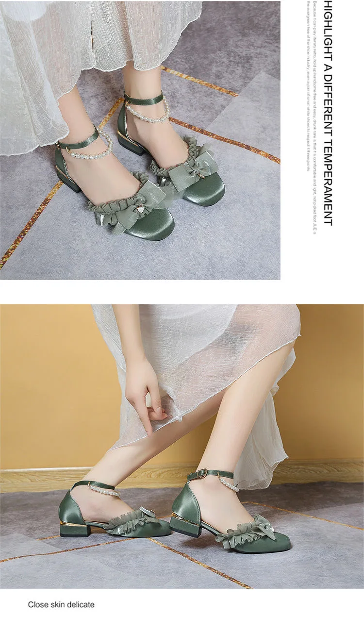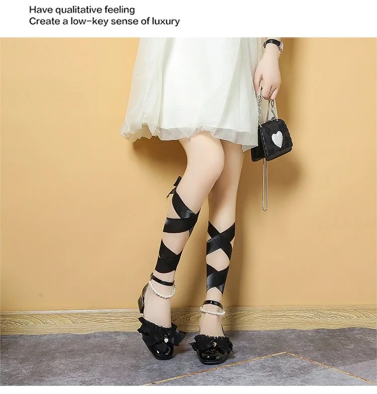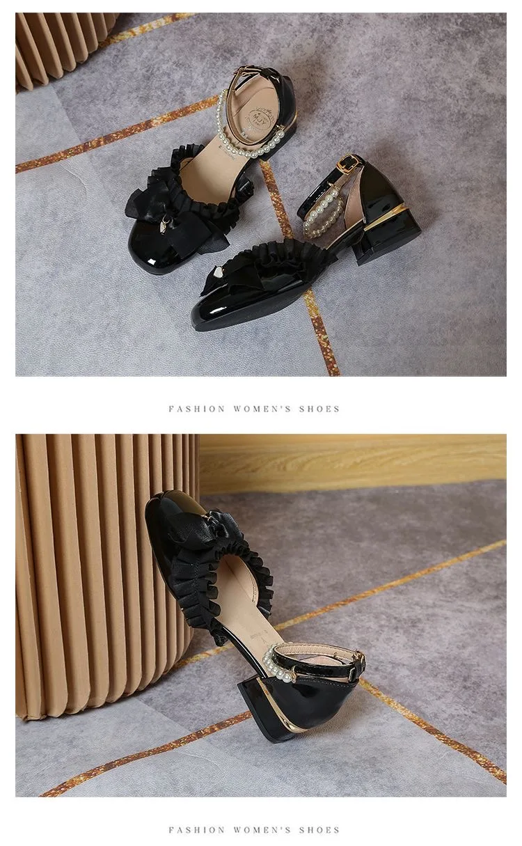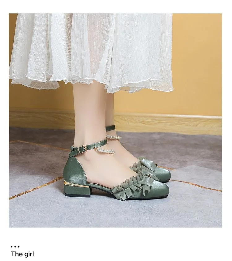 LIZAKOSHT - luxury evening shoes women flower heels Y2k low heel shoes 3.5 cm sling chunky shoes Lolita platform heels Mary Jane shoes