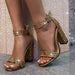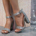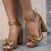 LIZAKOSHT - Luxury Women Sandals Shiny Bow Sequins Gold Silver Buckle Thick Heels High Heels Party Wedding Shoes