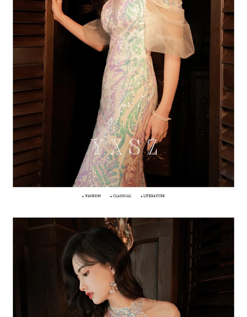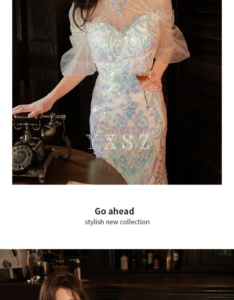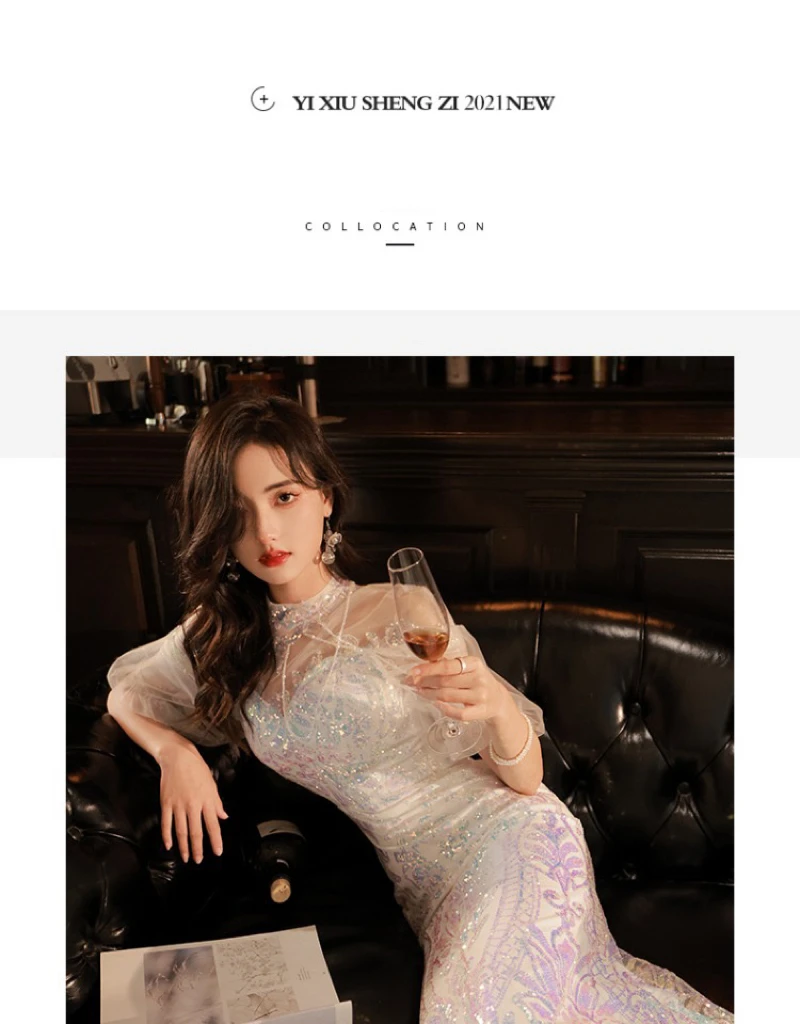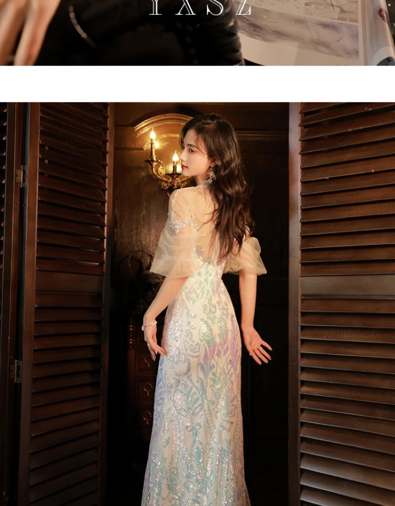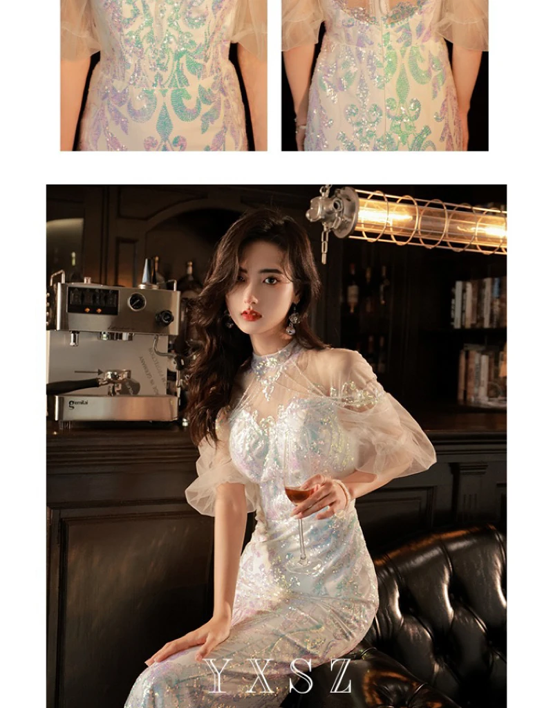 LIZAKOSHT - Mermaid Sequin Celebrity Dresses Bling Bling Latern Sleeve Beading Luxury Women Zipper Party Sexy Long Wedding Prom Gowns New