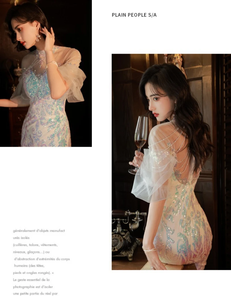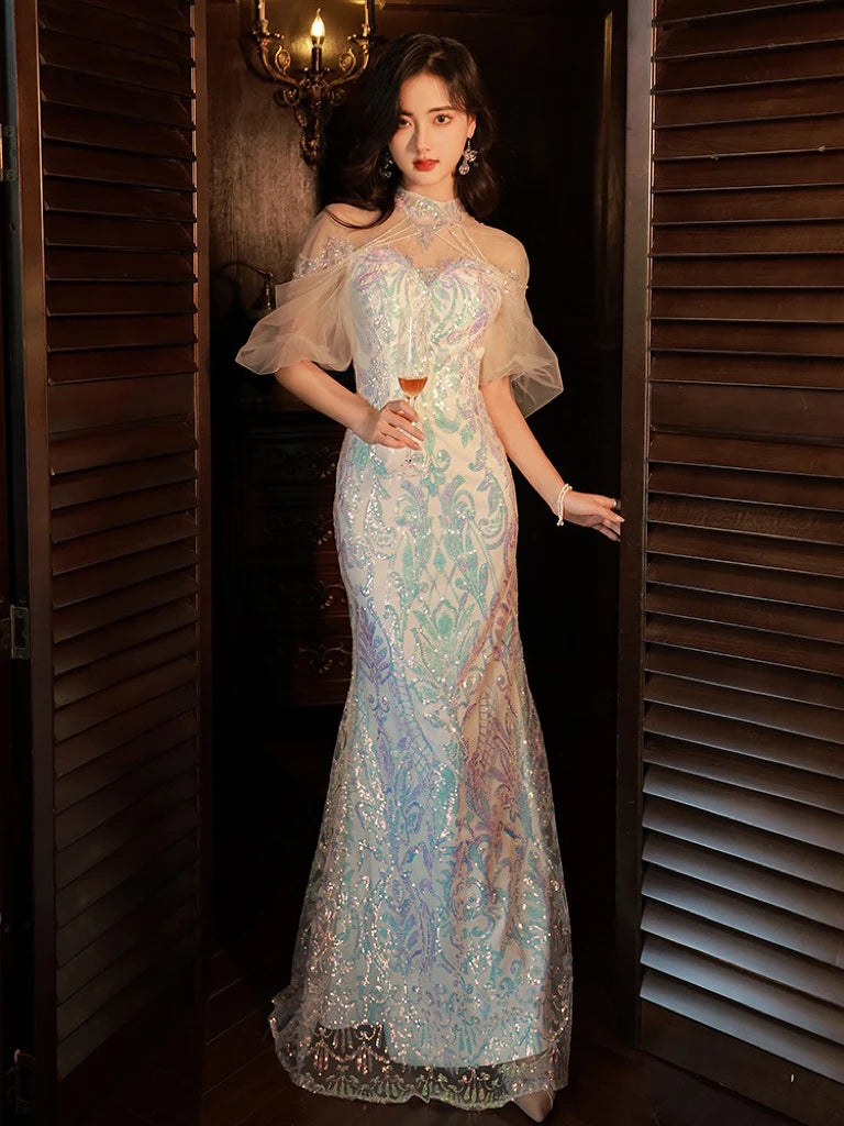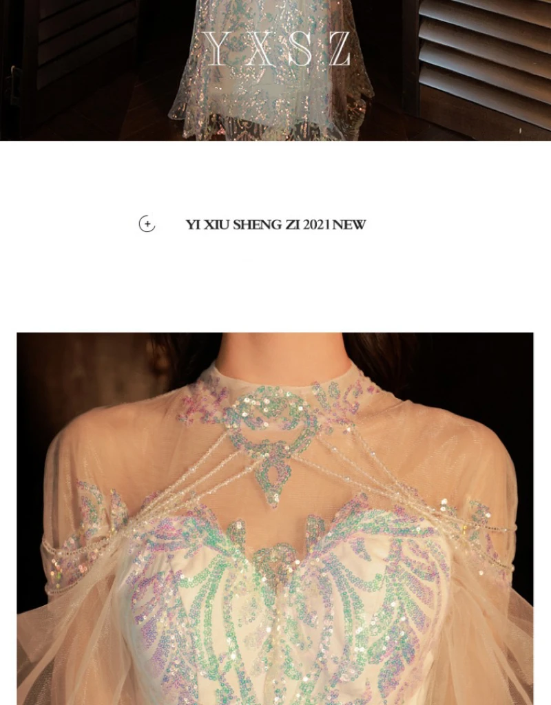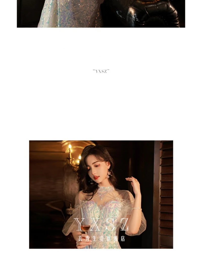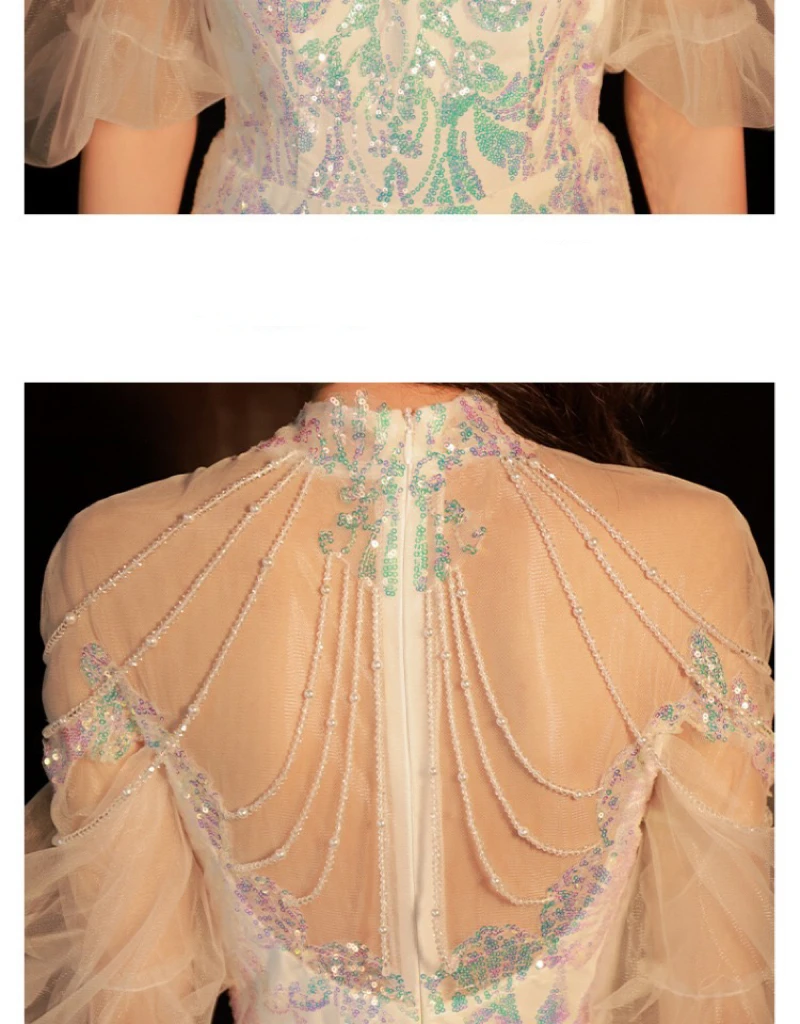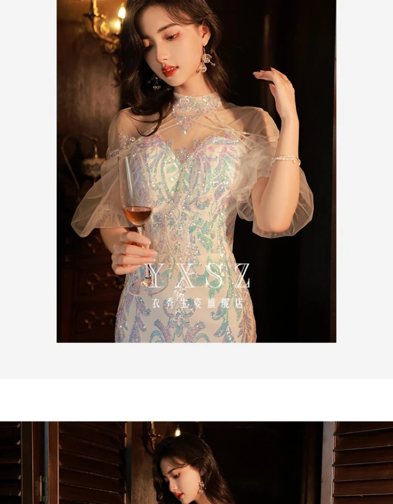 LIZAKOSHT - Mermaid Sequin Celebrity Dresses Bling Bling Latern Sleeve Beading Luxury Women Zipper Party Sexy Long Wedding Prom Gowns New