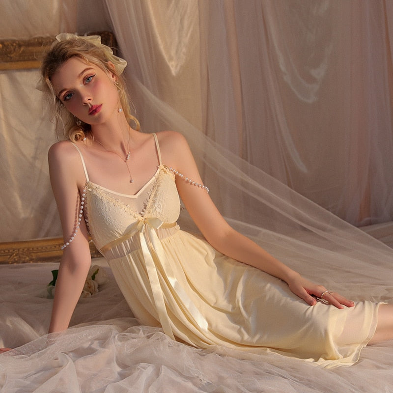 Lizakosht Mesh Cloth Suspender Nightdress Long Sweet Pajamas Princess Sleepwear Sexy Ladies Chest Cushion Halter Women Home Service