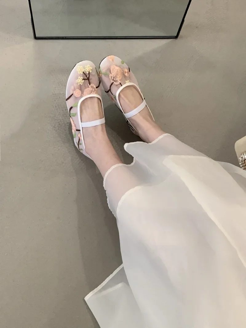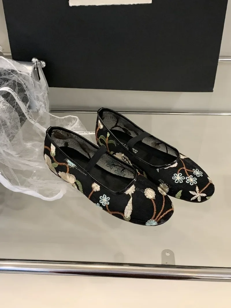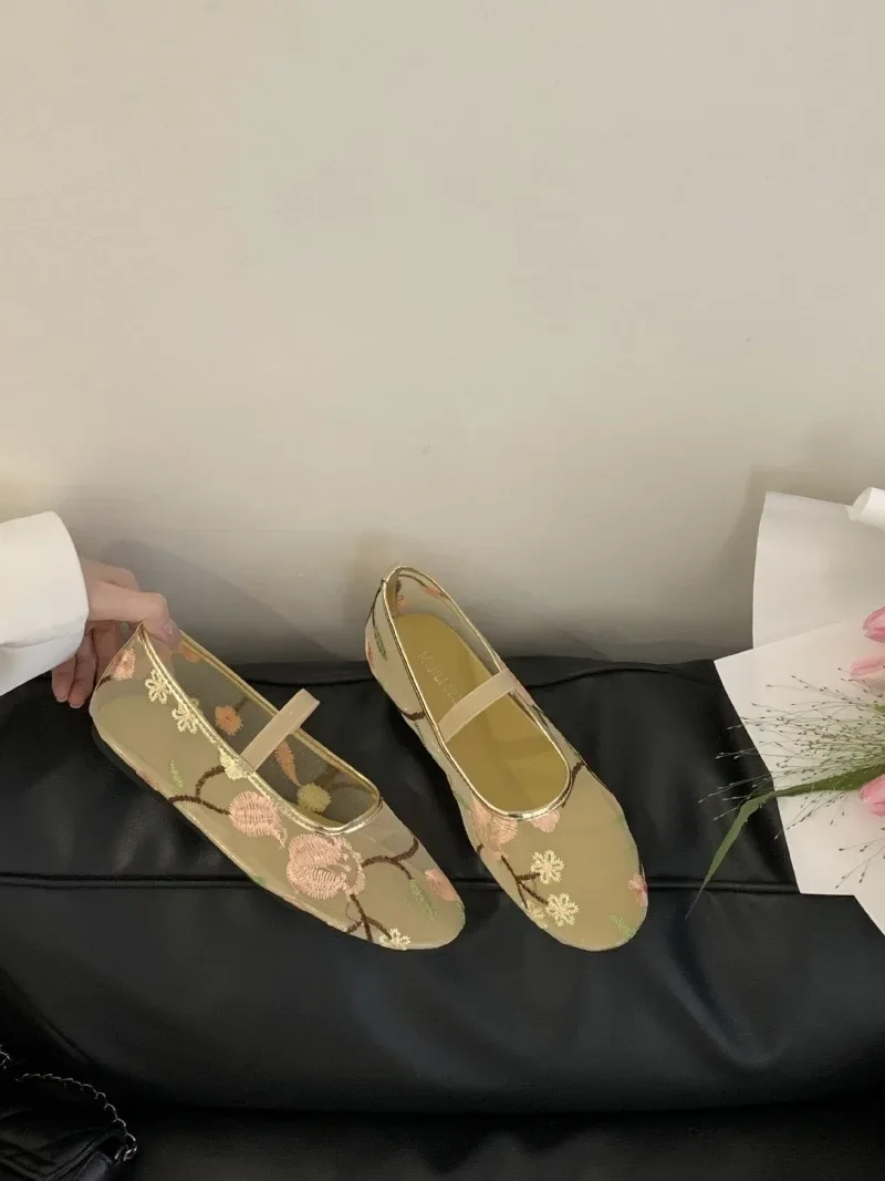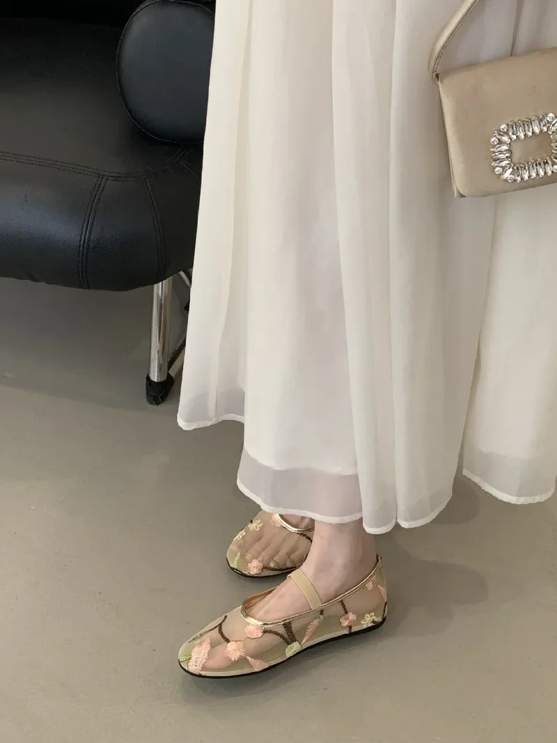 LIZAKOSHT - Mesh Embroidered Design Ballet Flats Womens Comfortable Round Toe Breathable Mule Sandals Casual Soft Bottom Beach Shoes Pumps