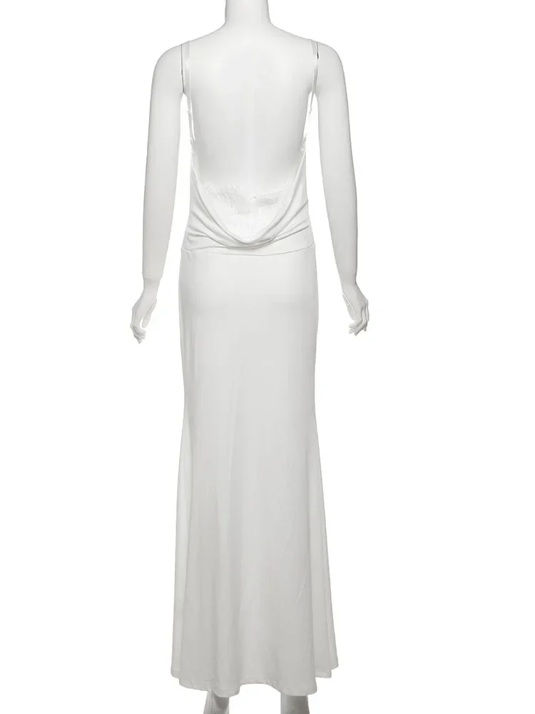 LIZAKOSHT  -  Mesh Patchwork Backless Dress Women Summer Trend Swing Collar Sleeveless Street Fashion Ruched Elegant Long Bodycon