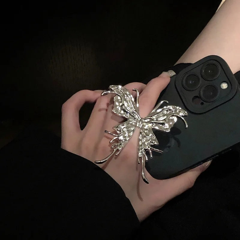 Lizakosht Metal Exaggerated Big Butterfly Ring Punk Adjustable Delicate Insect Ring Party Women Trend
