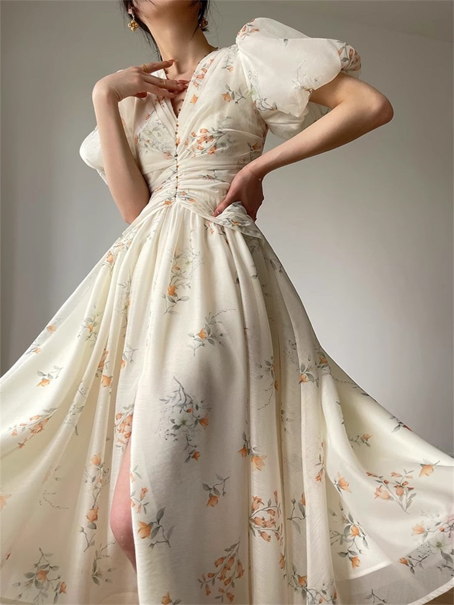 Lizakosht Midi Dress Women Summer New Fashion Elegant Casual Slim Vestidos Evening Party Korean Print Dresses Female Vintage Clothes