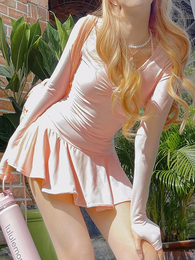 LIZAKOSHT Mini Dress Women Pink Hotsweet Short Dresses Female Preppy Style Chic A-Line Dress Ladies Spring Fashion Long Sleeve Vestidos