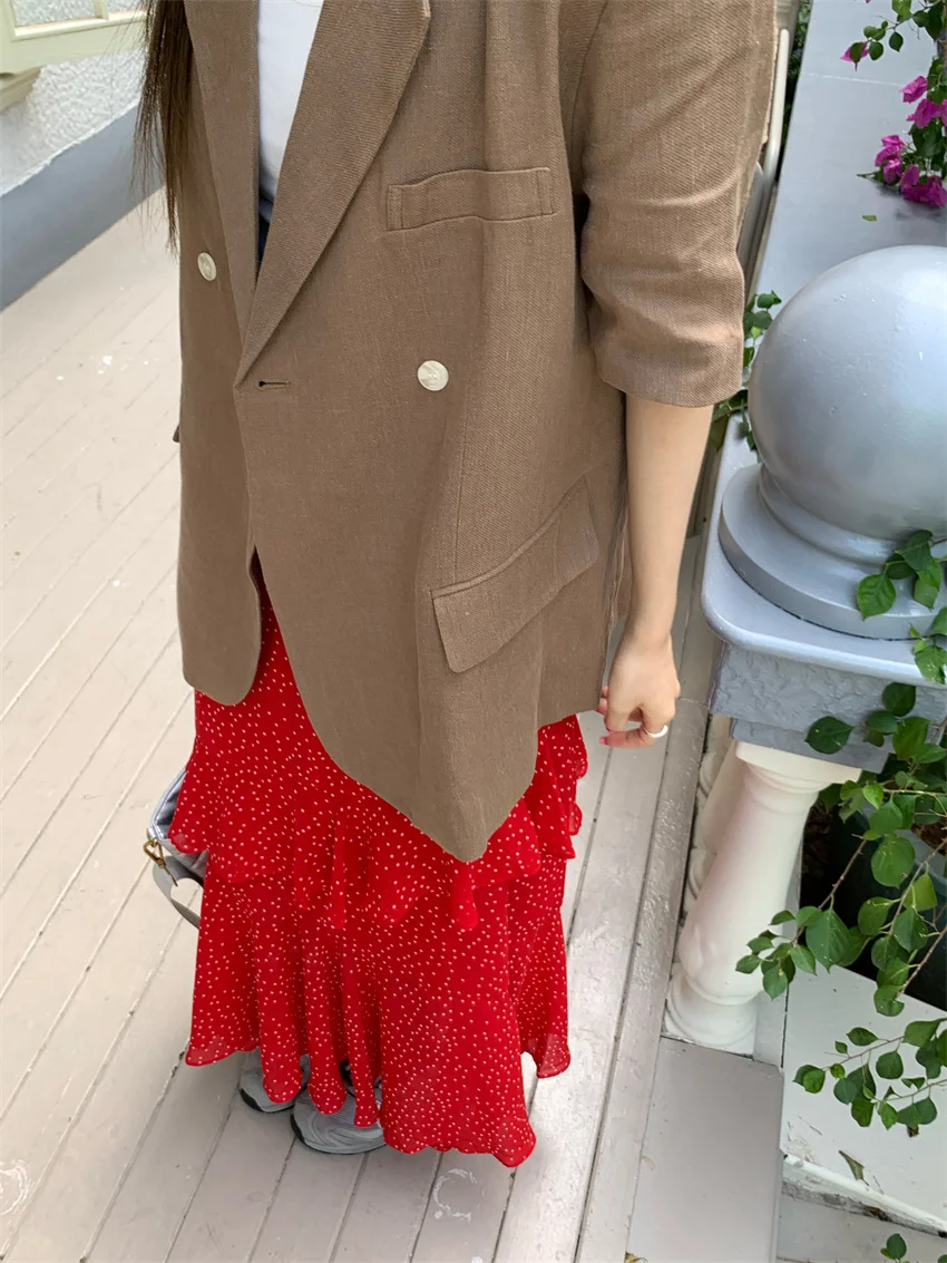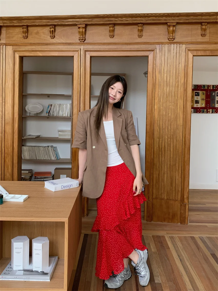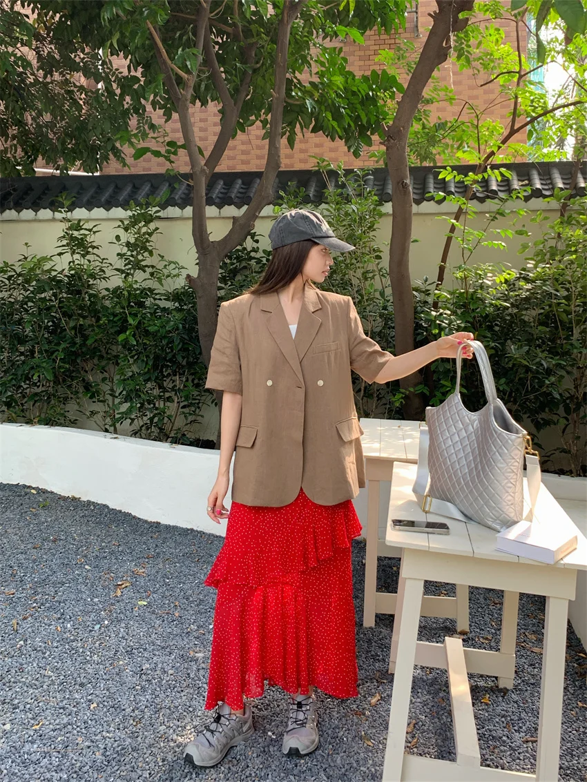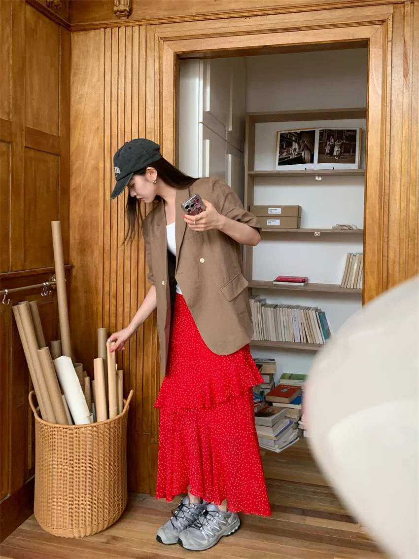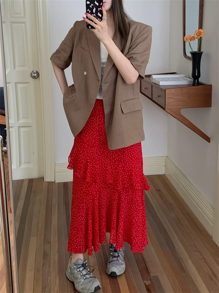 LIZAKOSHT - Minimalist Polka Dots Skirts Women Chic Loose Elegant 2024 New Fashion Summer Half Sleeve Slim Work Wear Blazers