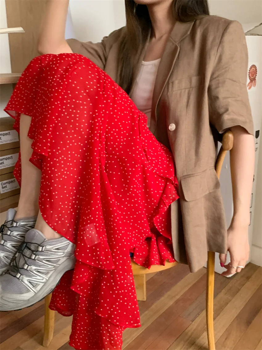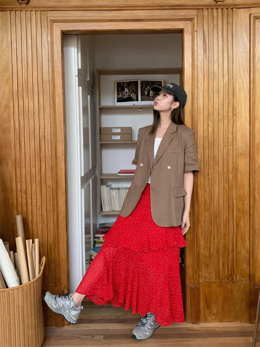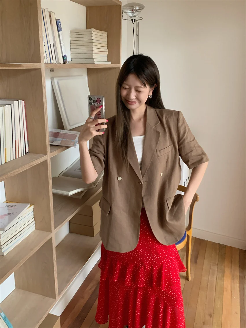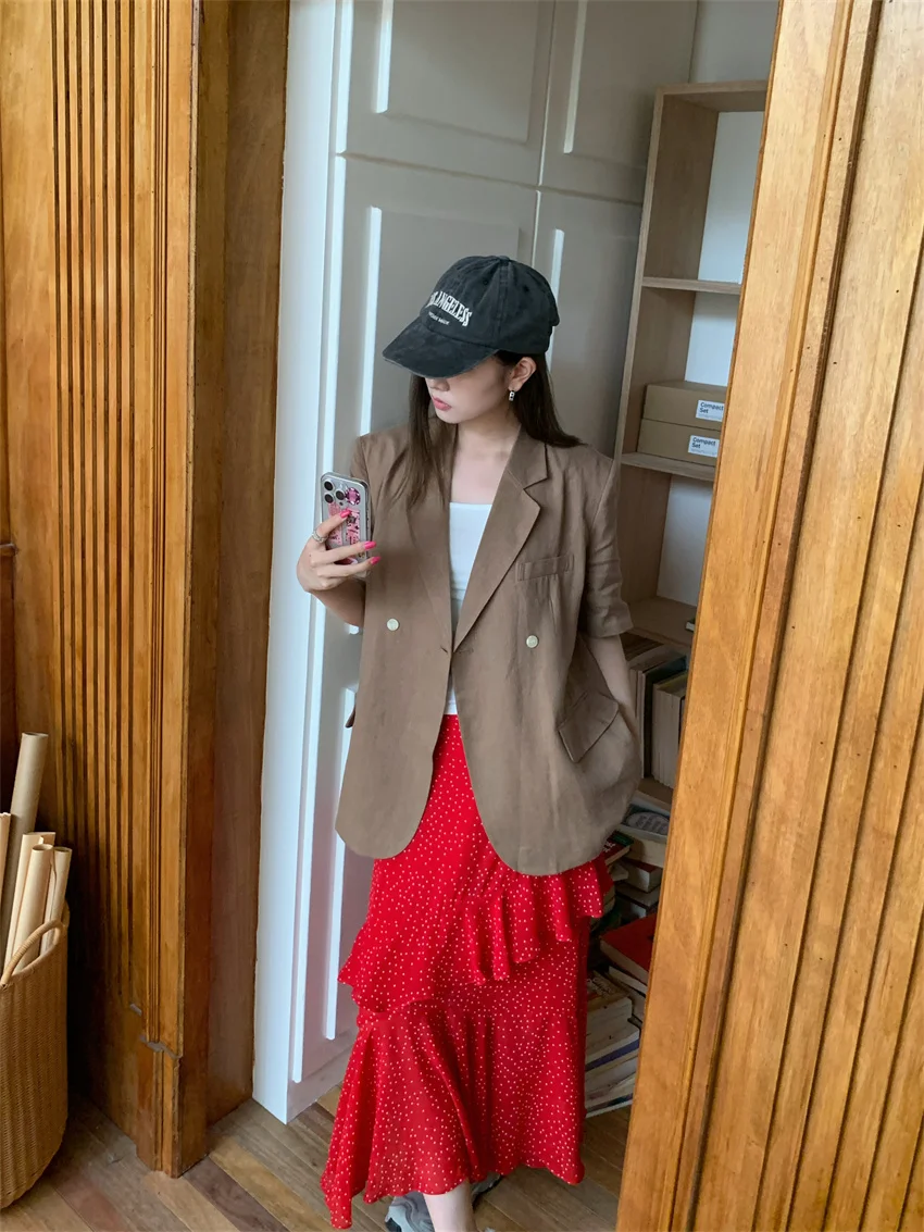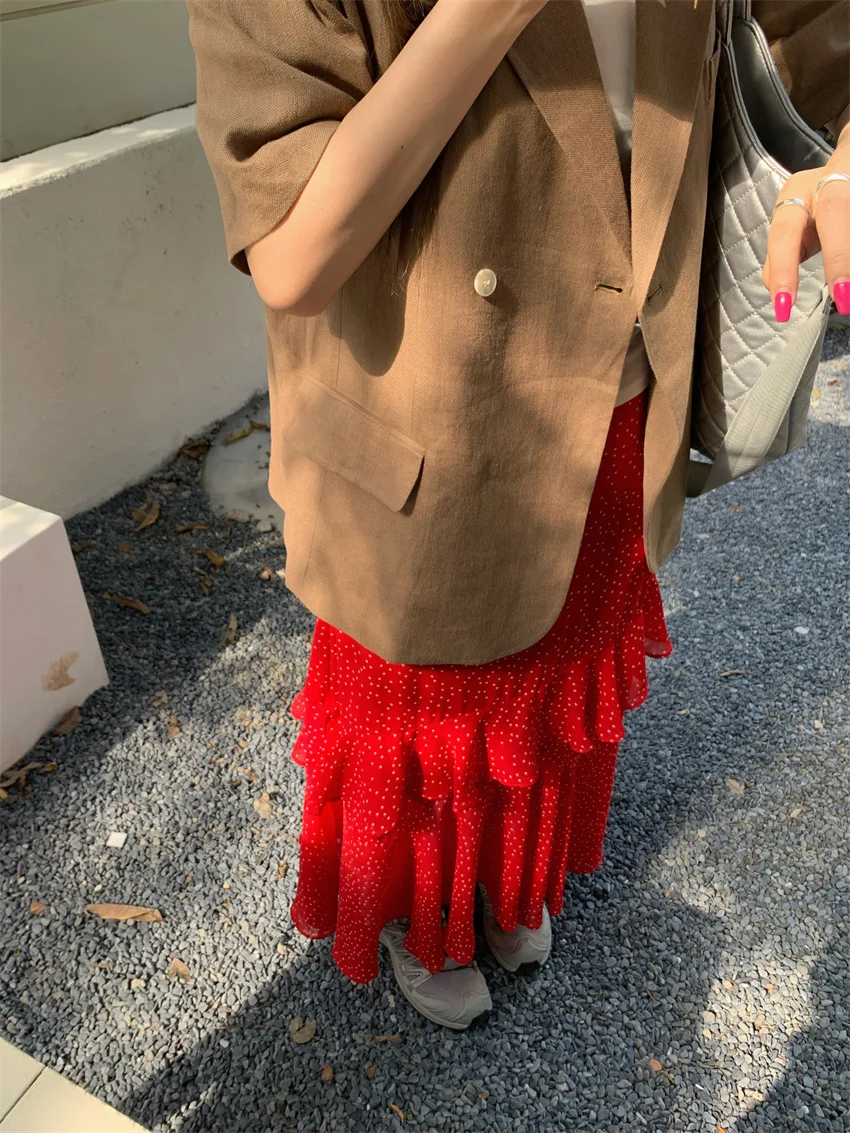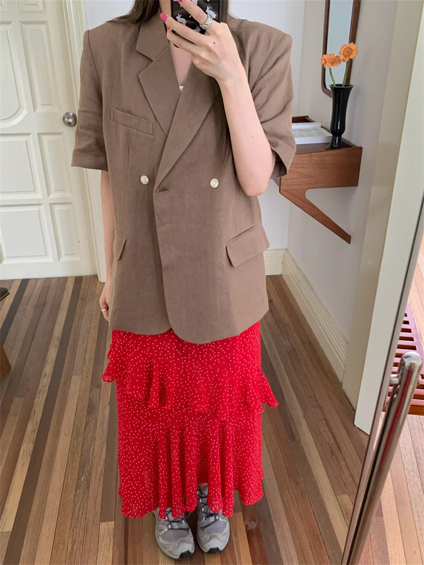 LIZAKOSHT - Minimalist Polka Dots Skirts Women Chic Loose Elegant 2024 New Fashion Summer Half Sleeve Slim Work Wear Blazers