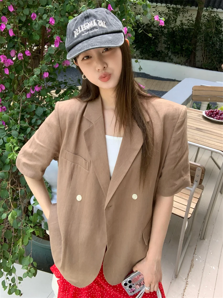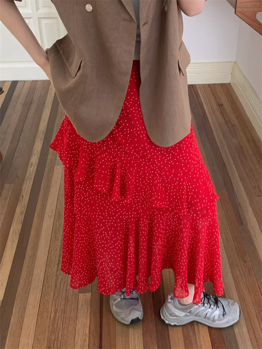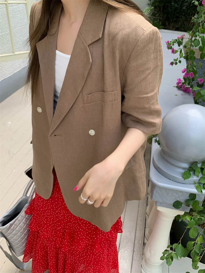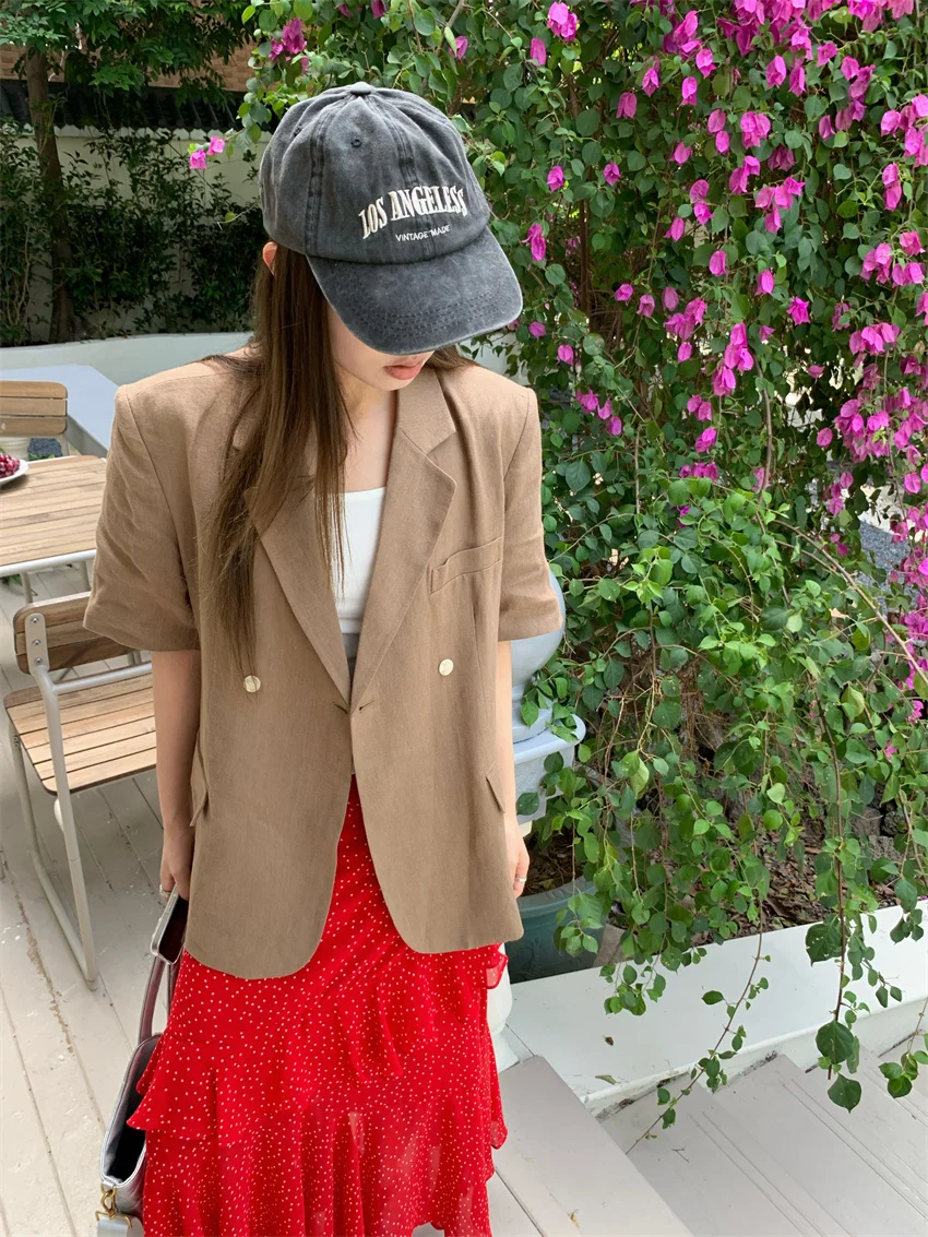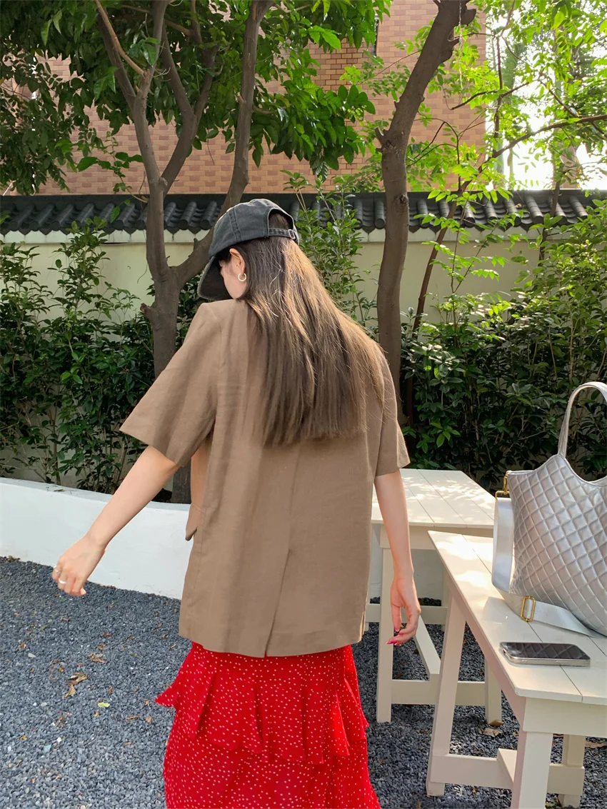 LIZAKOSHT - Minimalist Polka Dots Skirts Women Chic Loose Elegant 2024 New Fashion Summer Half Sleeve Slim Work Wear Blazers