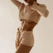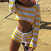 LIZAKOSHT  -  Navel Vacation Outfits Casual Long Sleeve O-Neck Blouse Top&Drawstring Pants 2 Piece Set Summer Striped Knit Women's Suit