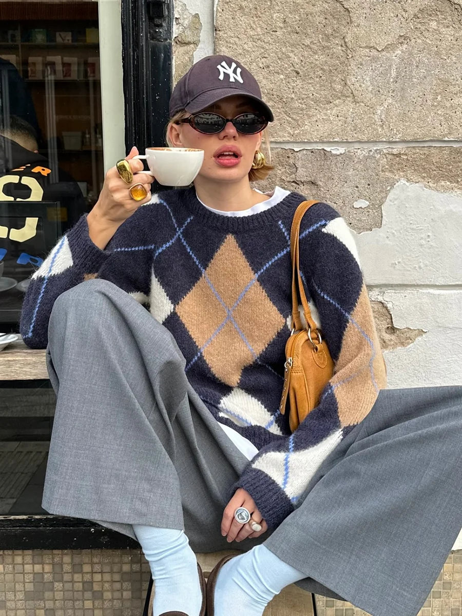LIZAKOSHT  -  Navy Sweaters Woman Autumn Round Neck Long Sleeve Short Pullover Top Female Vintage Streetwear Preppy Style Jumpers New