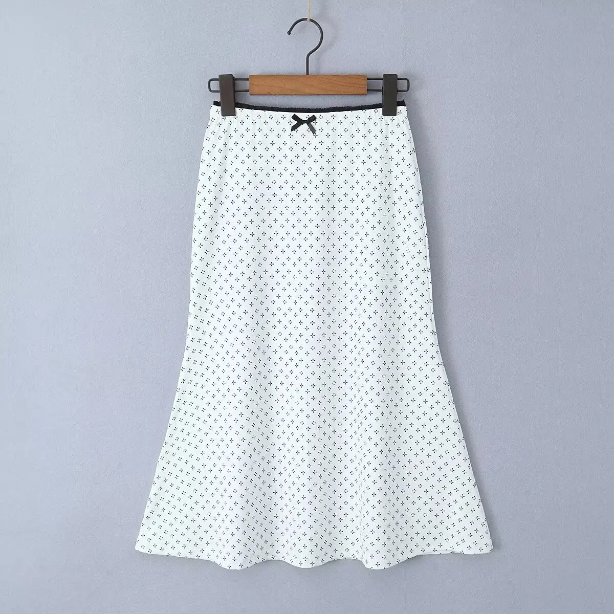 LIZAKOSHT - New 2024 Women Lace Trim Floral Print Fishtail Skirt Bow Elastic Waist Female Summer Midi Skirt Holiday
