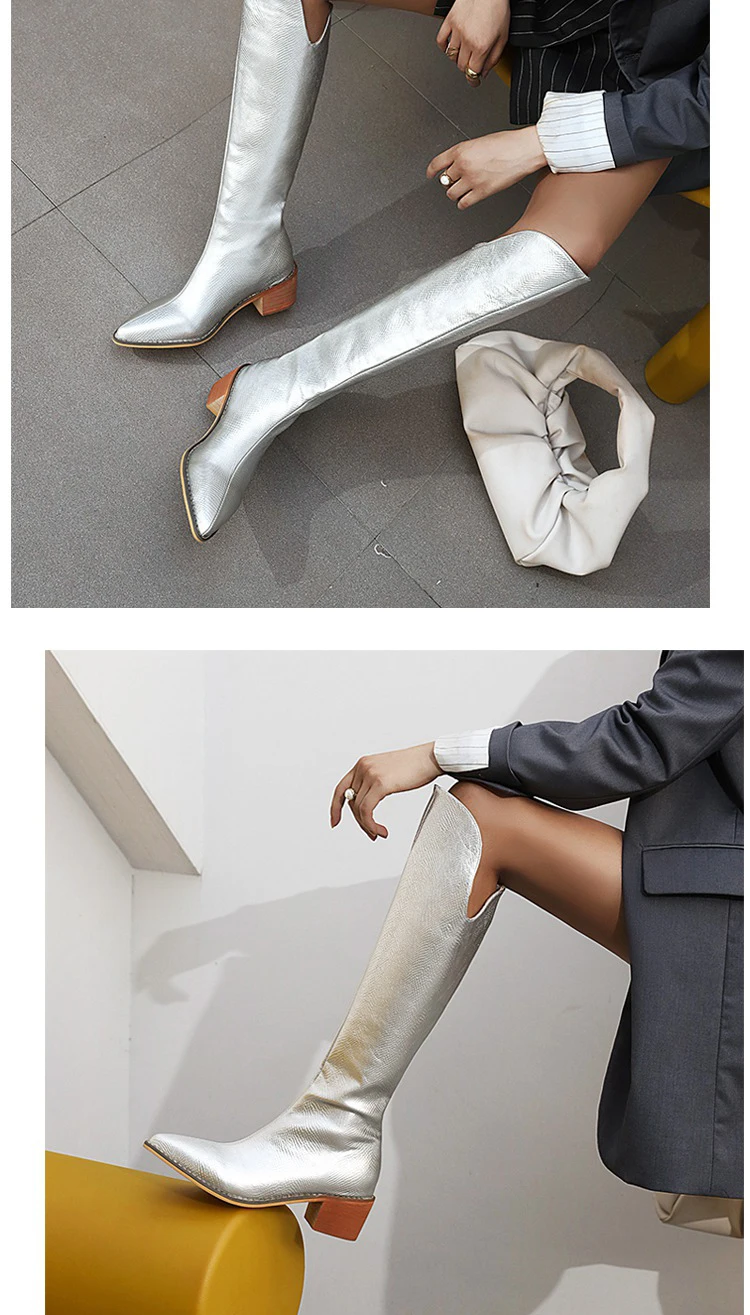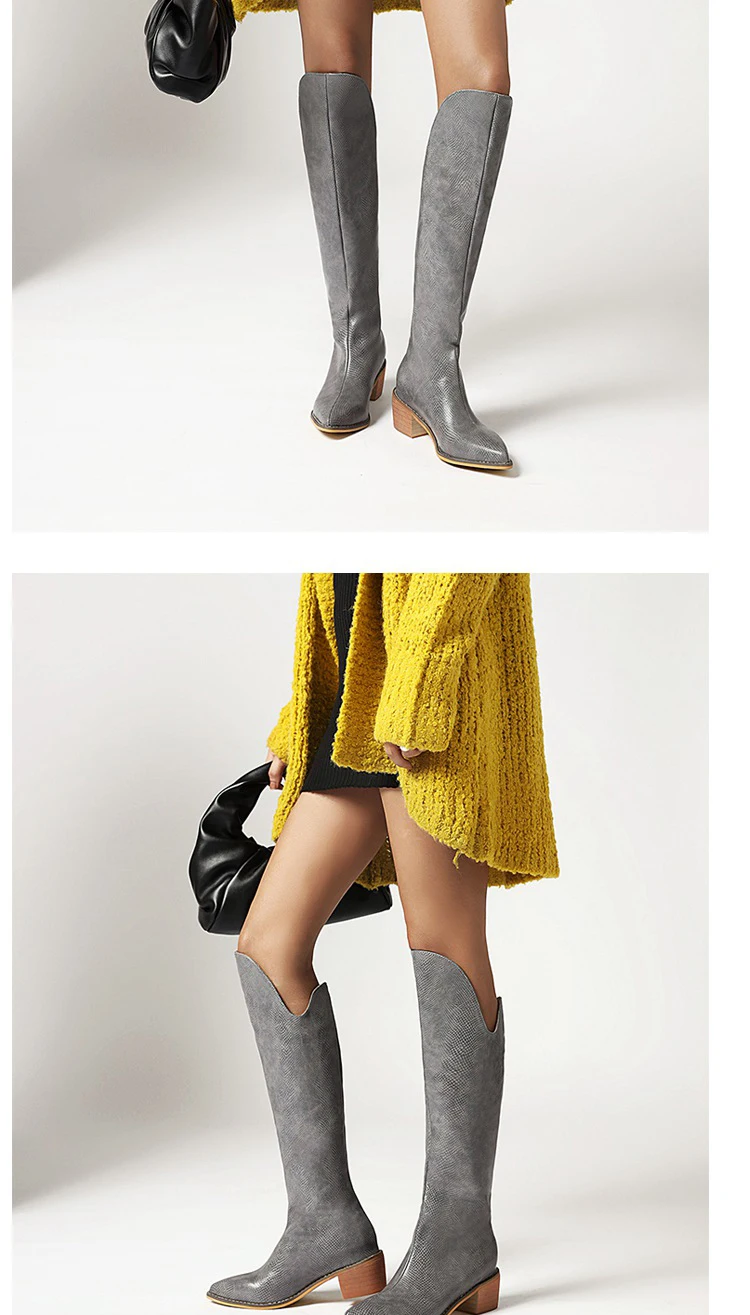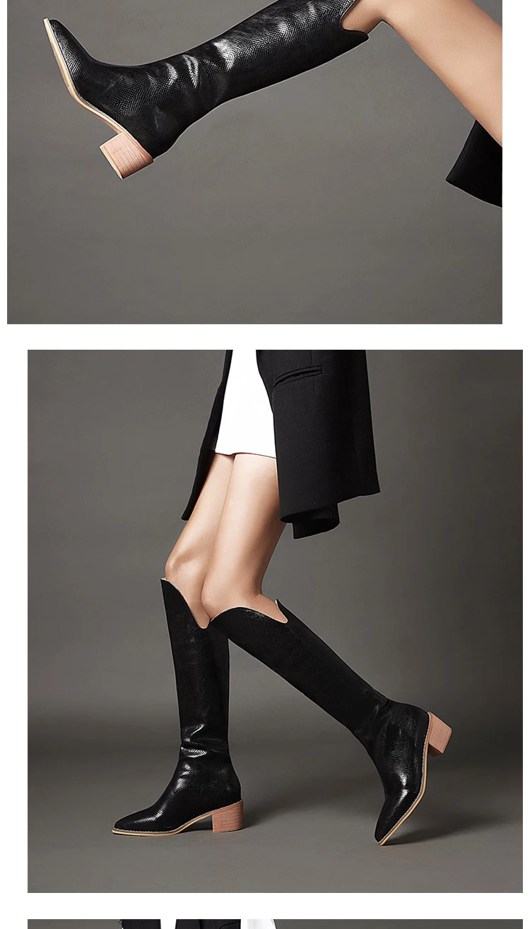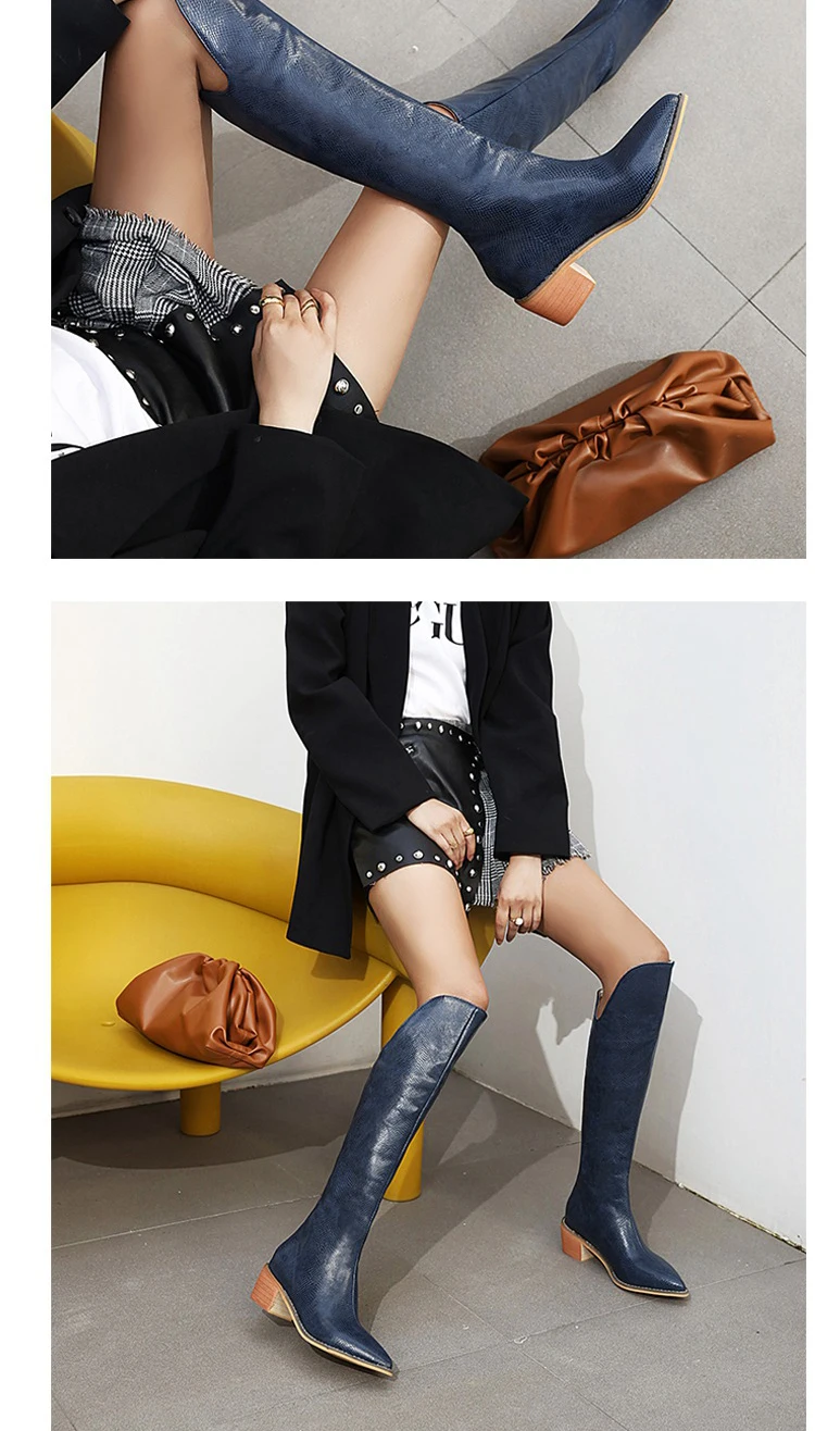LIZAKOSHT - new antumn winter women long boots plus size 22-28 cm Snake grain leather knee high boots women modern Boots high heel boots