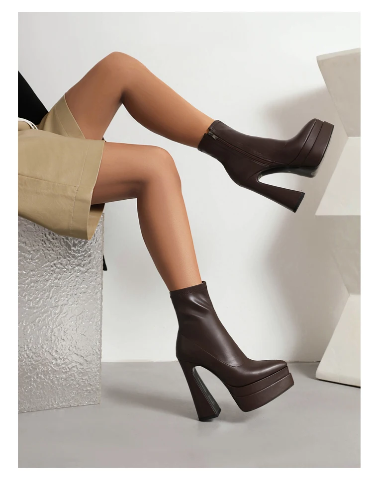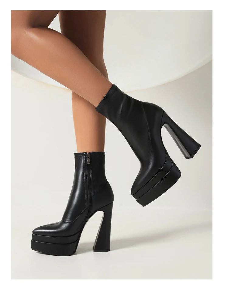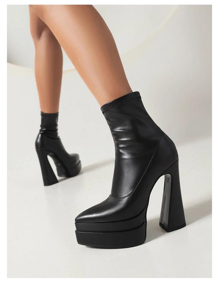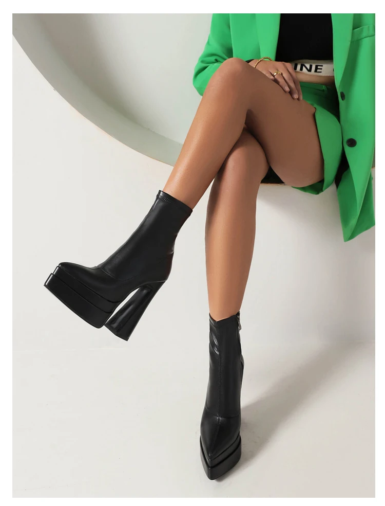 LIZAKOSHT - new Autumn winter women ankle boots plus size 22-28cm pu upper women modern Boot side zip pointed toe platform boots