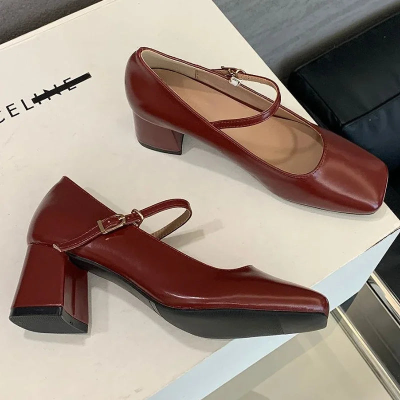 LIZAKOSHT - New Fashion Mary Jane Shoes Women Square Toe Elegant Office Shoes High Heel Dress Female Concise Shallow Comfort Women Pumps