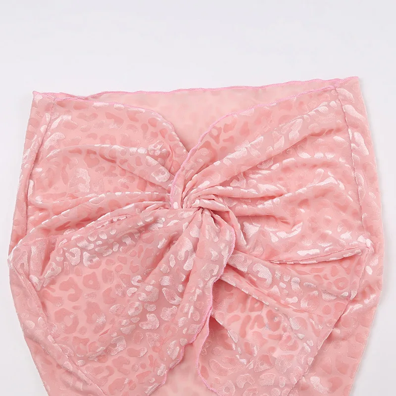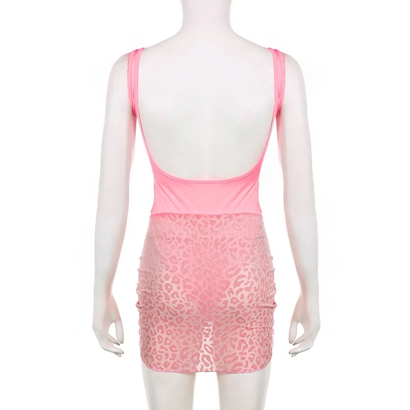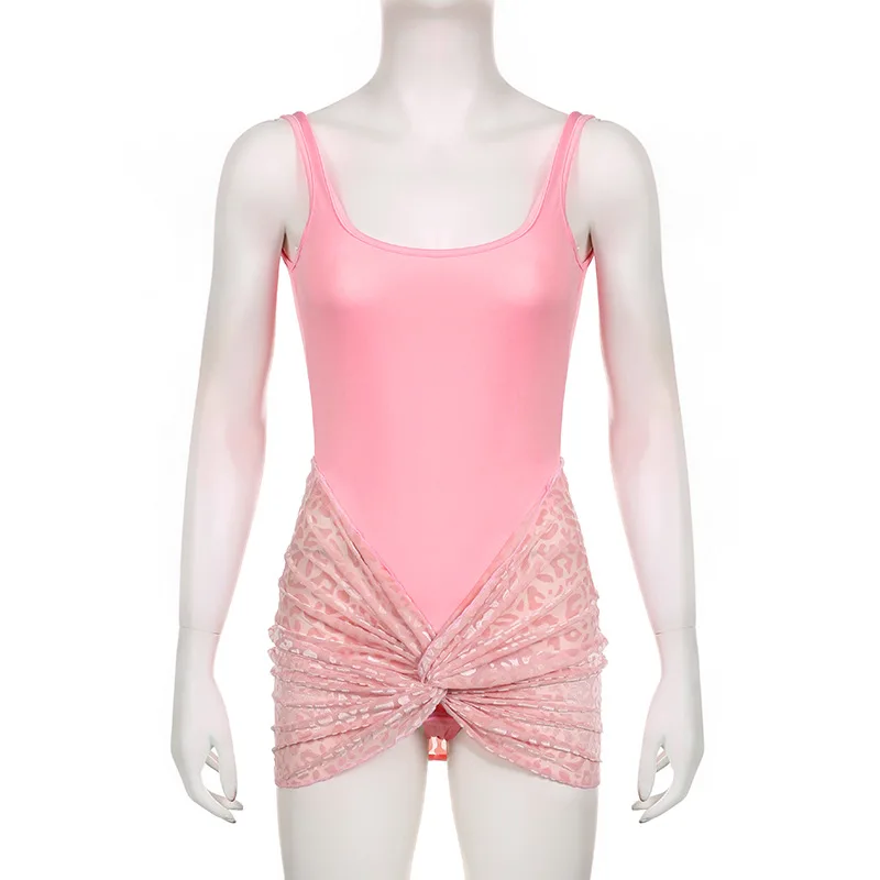 LIZAKOSHT - New Fashion Party Matching Outfits For Women 2 Sets U Neck Sleeveless Bodysuit+Leopard Mesh Ruched Skirts Female Y2k Clothing