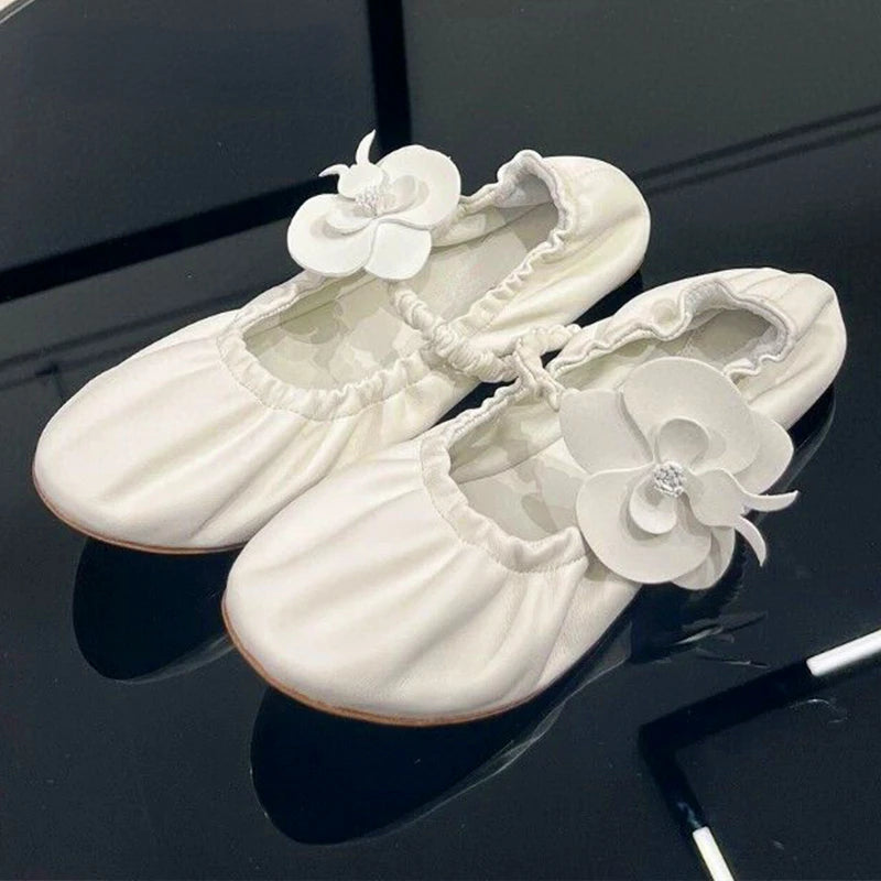 LIZAKOSHT - New Flower Flat Mary Jane Shoes Women Round Toe Comfy Casual Loafers White Fashion Brand Mule Shoes Designer Floral Ballet Shoes