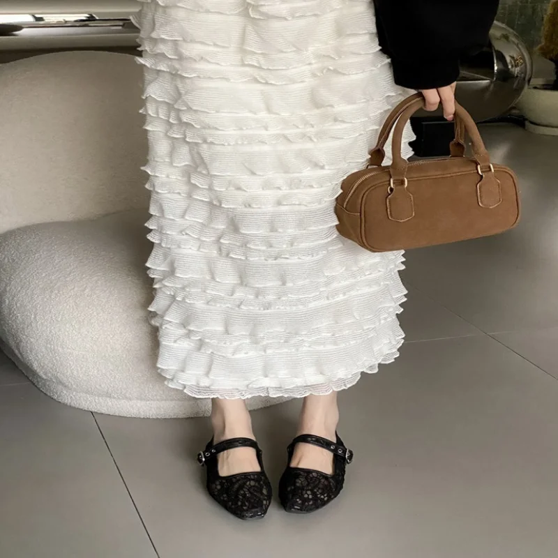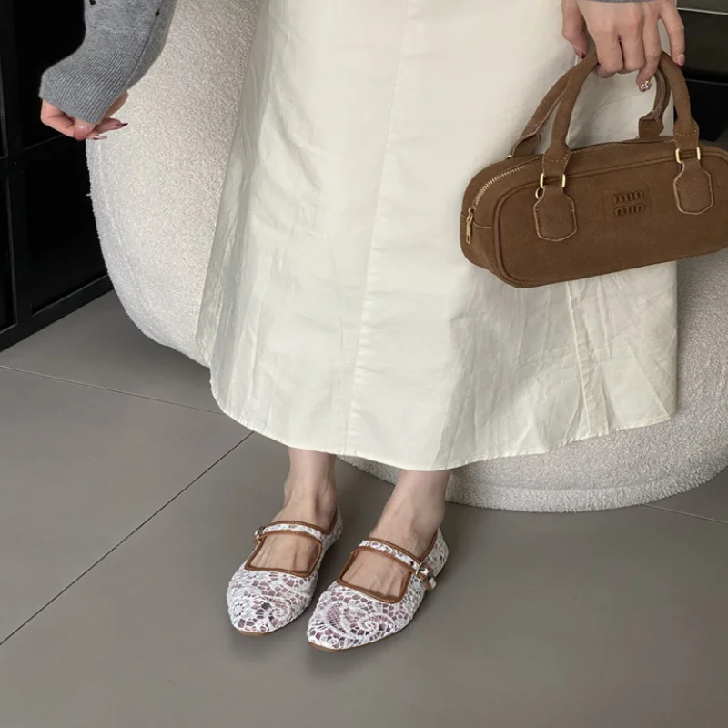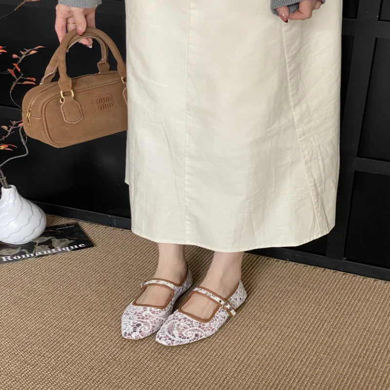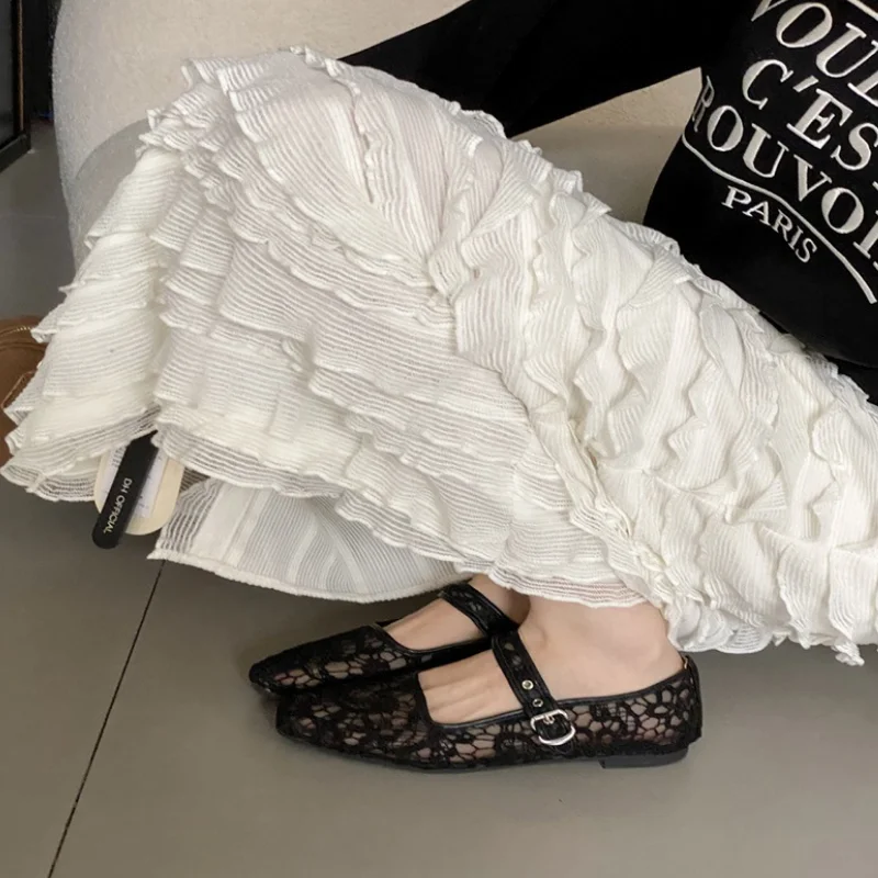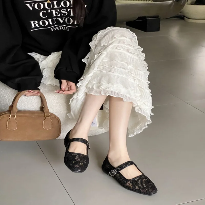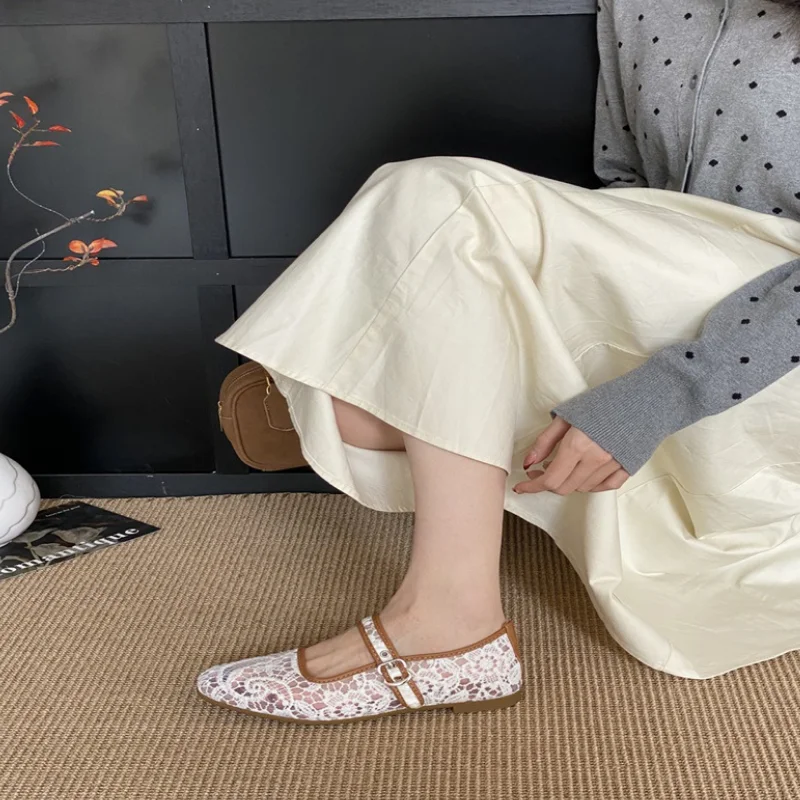 LIZAKOSHT - NEW Lace Women Mary Jane Shoes Fashion Shallow Buckle Comfort Soft Female Street Style Breathable Mesh Flats Sandals