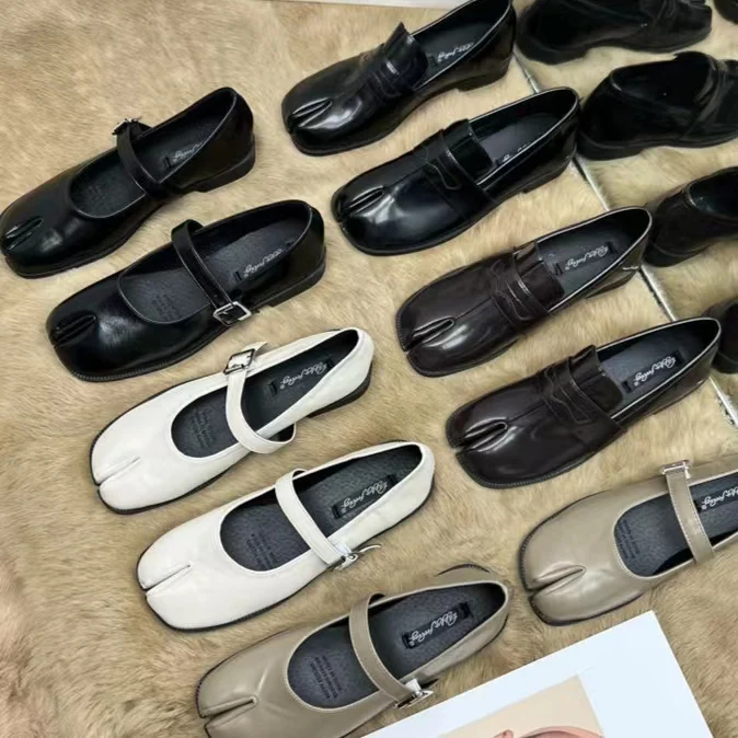 LIZAKOSHT - New Mary Jane Women Flat Split Toe Shoes, Microfiber Leather Comfortable Slip-on Sandals, Woman Soft Soled Loafers Shoes