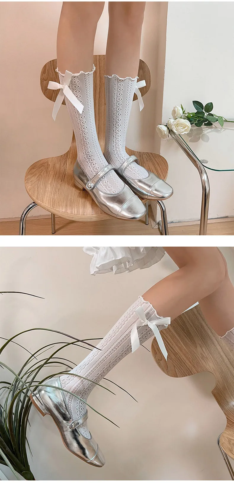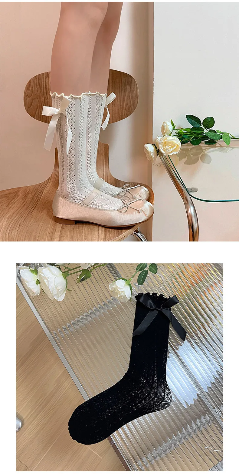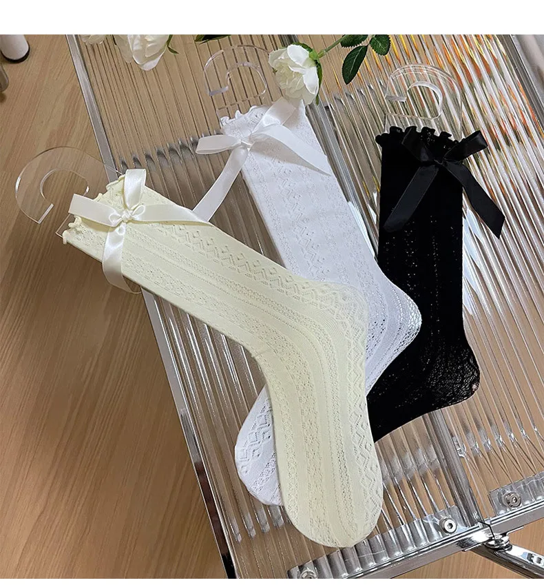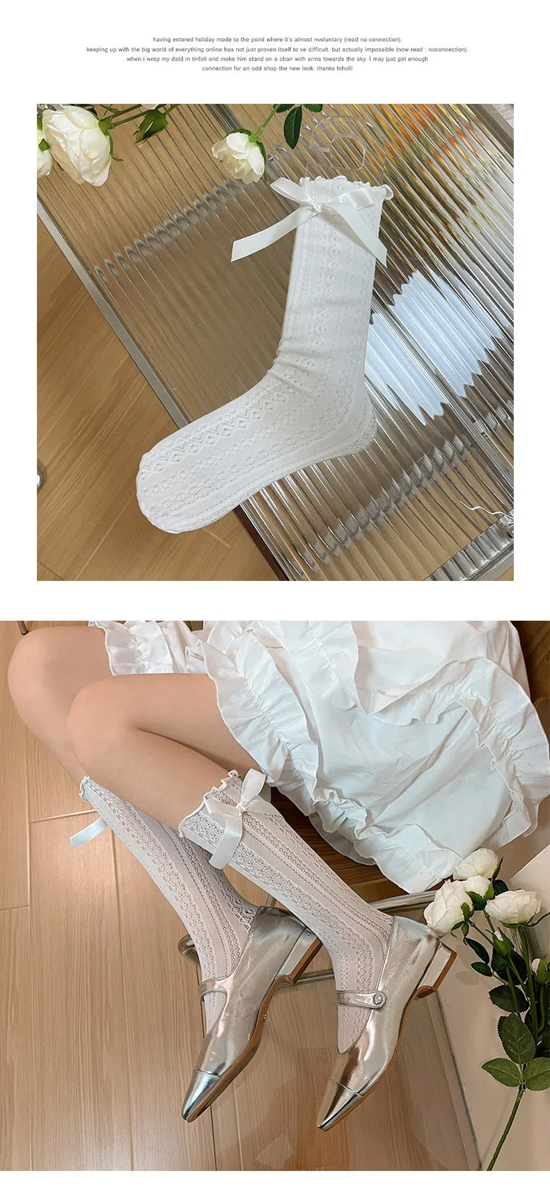 Lizakosht New Mesh Fishnet Lace Socks JK Japanese Fashion Sweet Girls Cute Bow Kawaii Socks Ballet Style Frilly Ruffles Socks Women