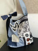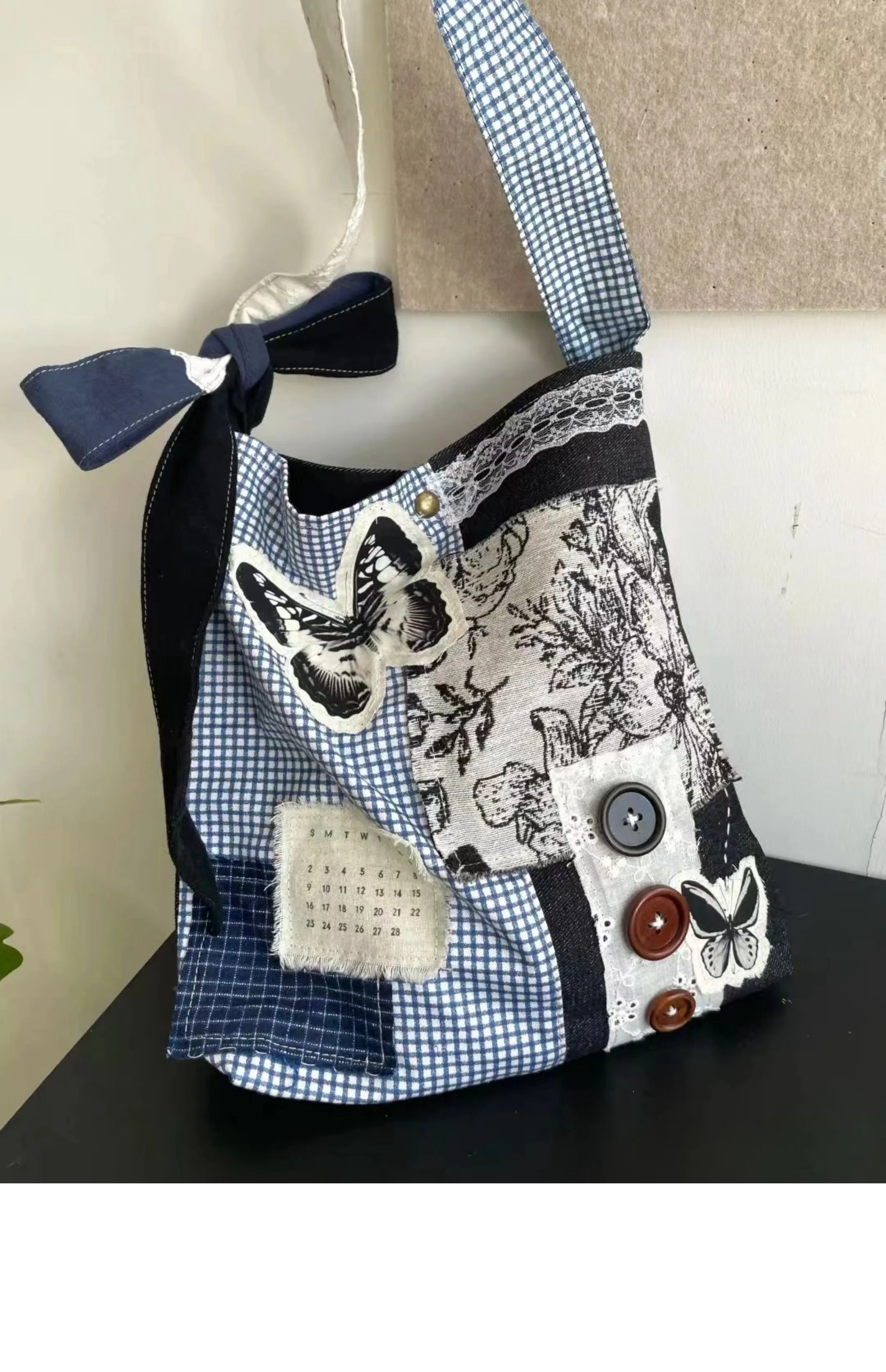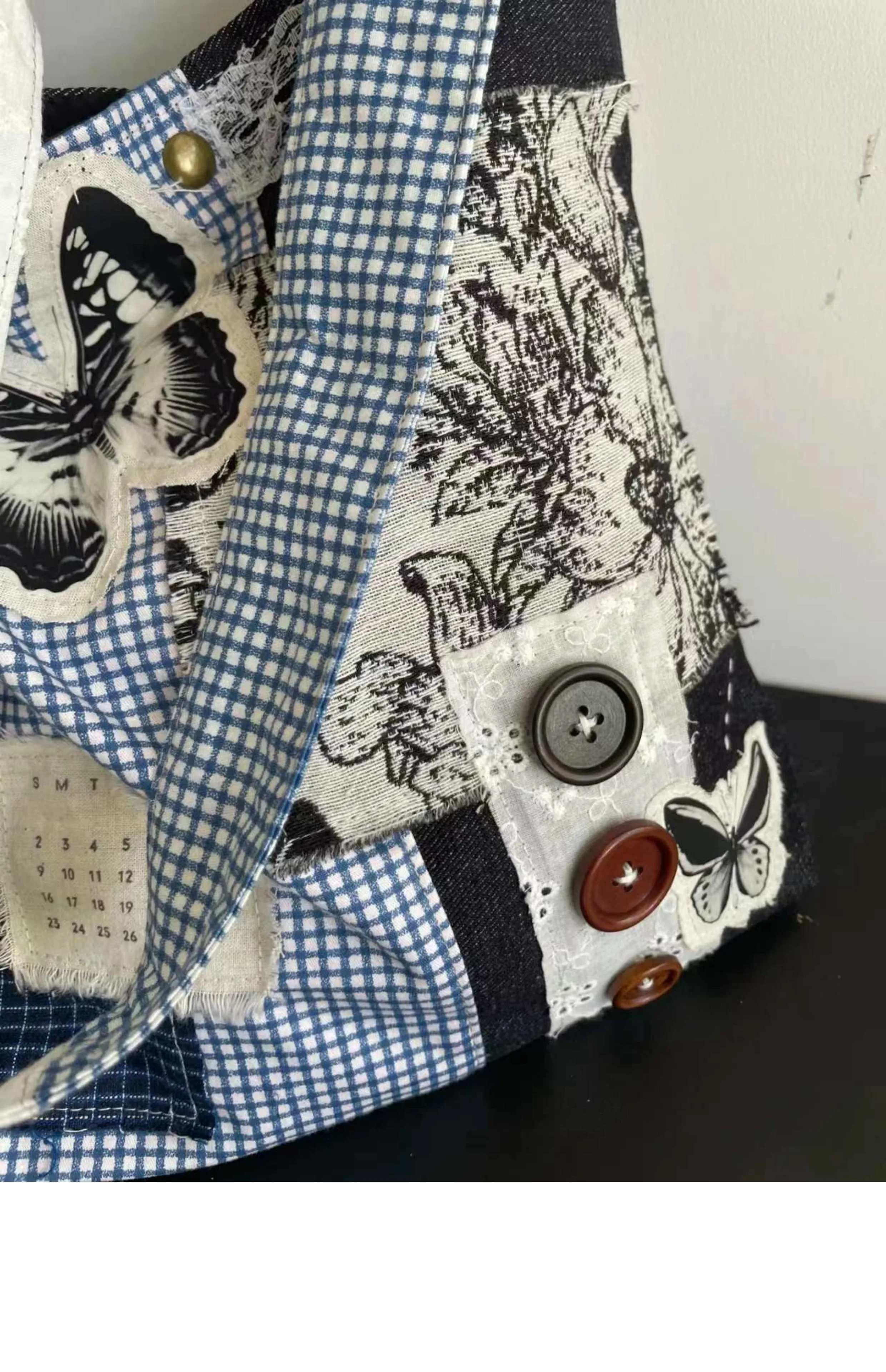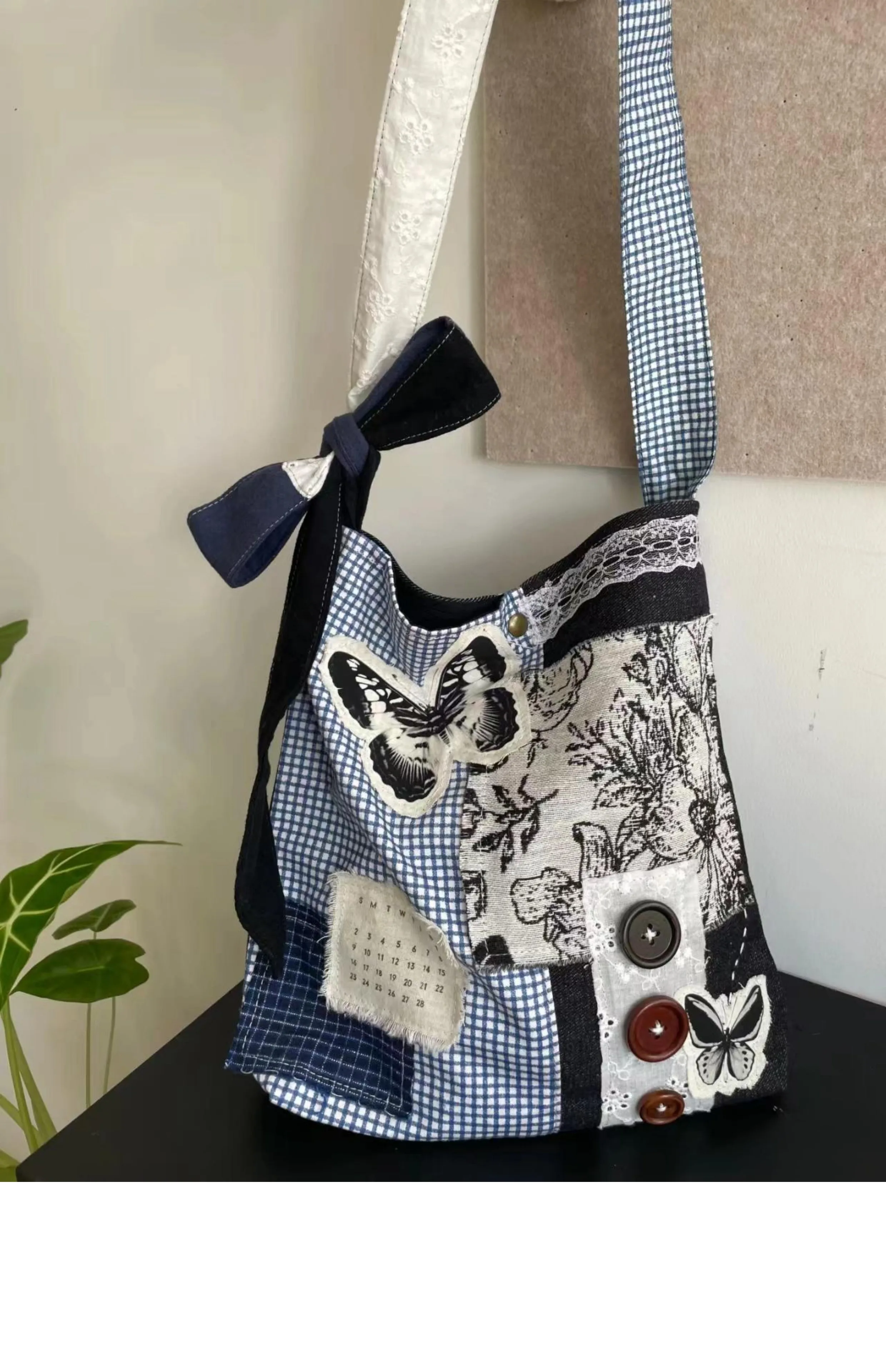 LIZAKOSHT - New Niche Design Butterfly Plaid Splicing Bucket Cloth Bags Causal Versatile Single Shoulder Crossbody Bag