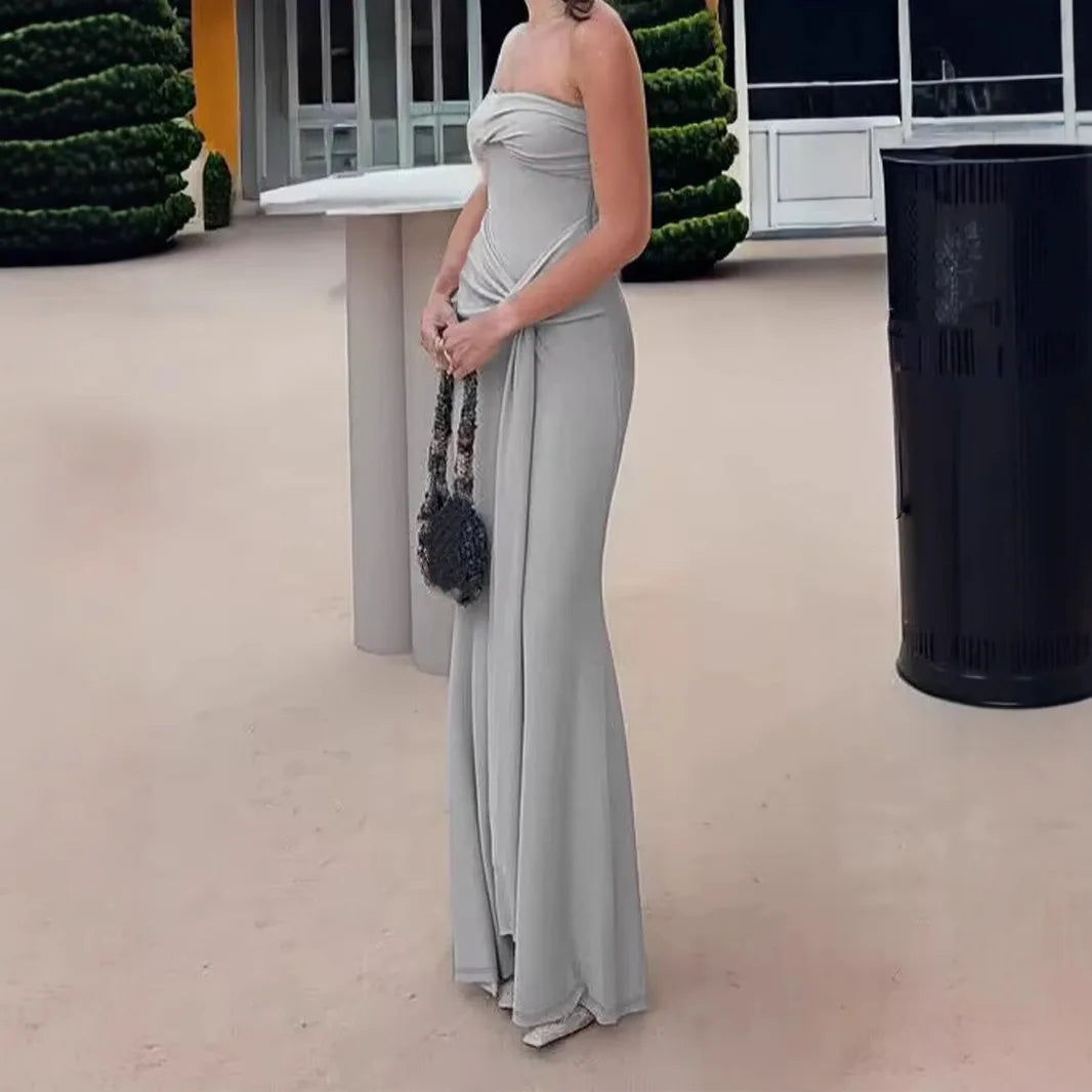 LIZAKOSHT - New Product Temperament Intellectual Wrinkle Off Shoulder Design Sense Hanging Belt Waist for Slimming and Skincare Dress