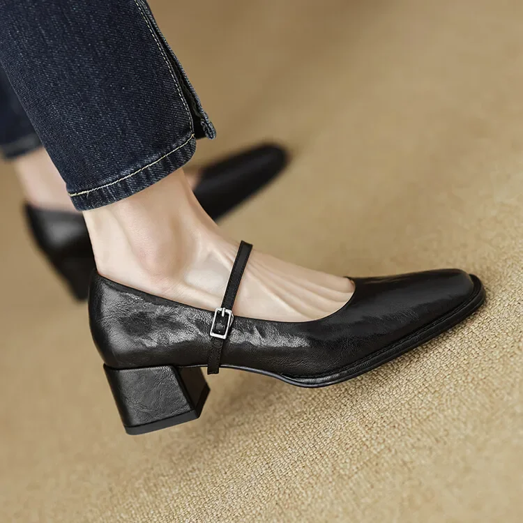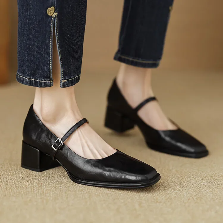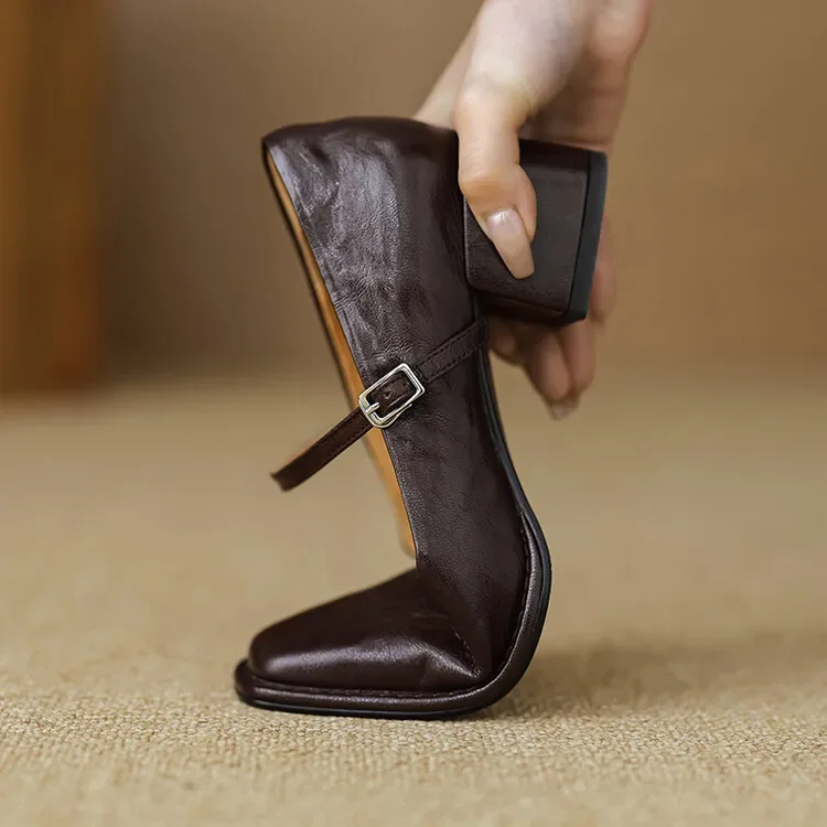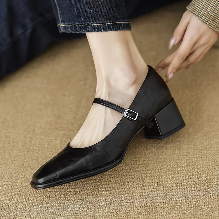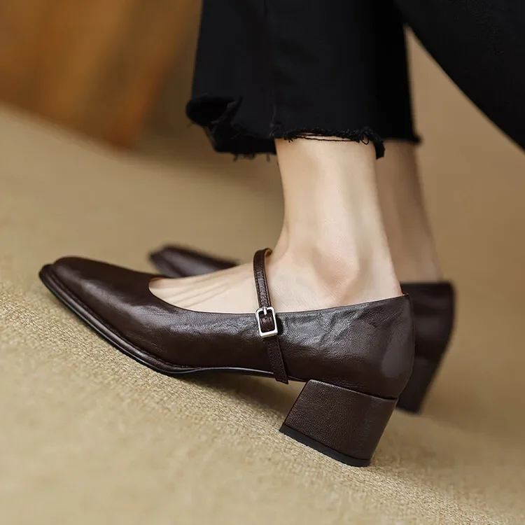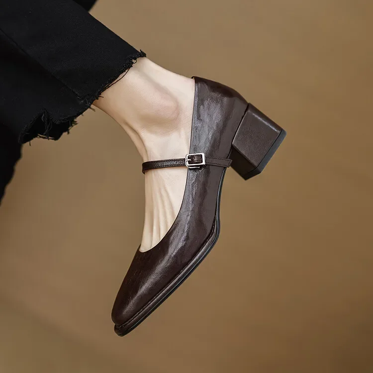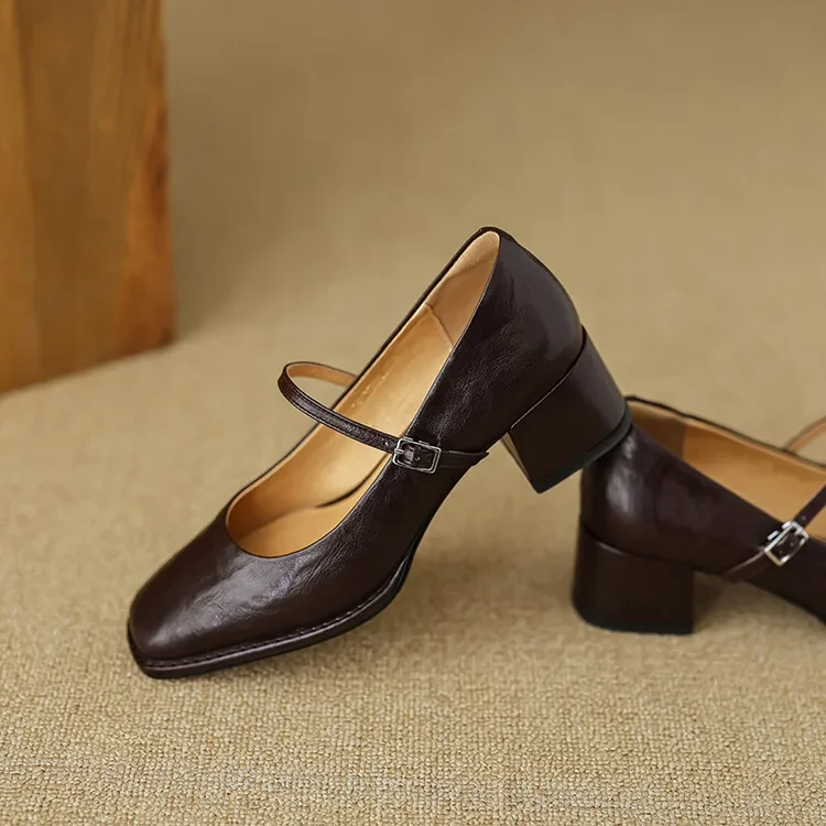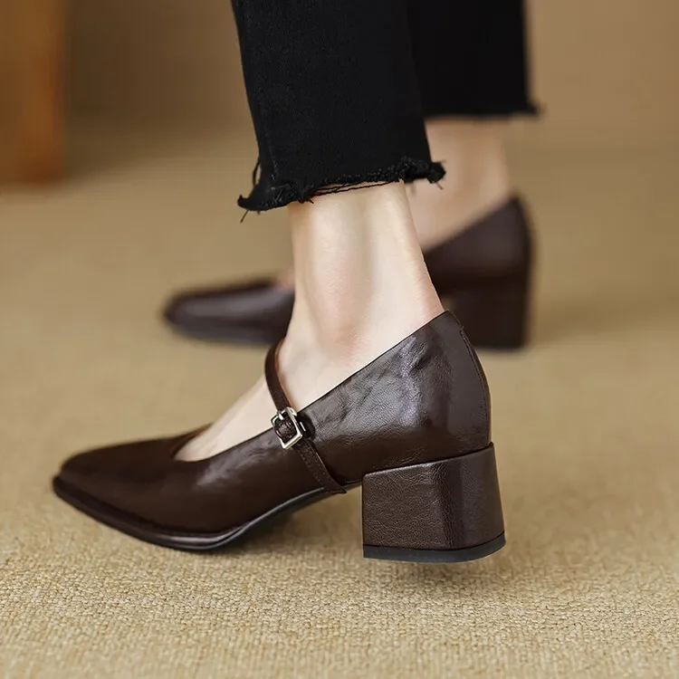 LIZAKOSHT - New retro classic Thick Heel shoes breathable and simple style with genuine leather upper, comfortable,