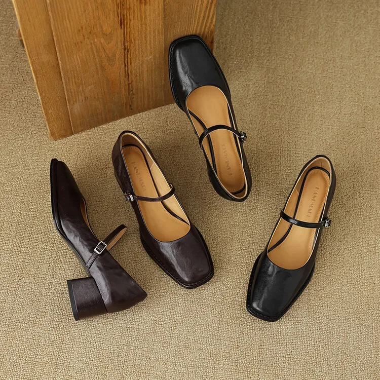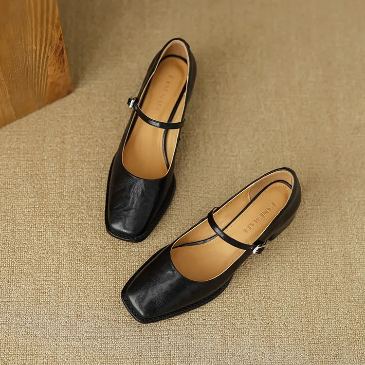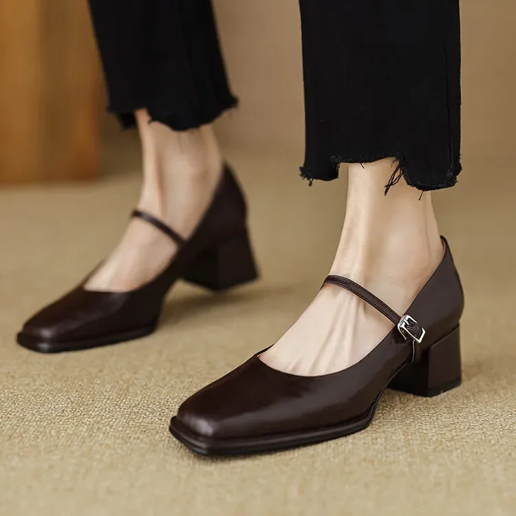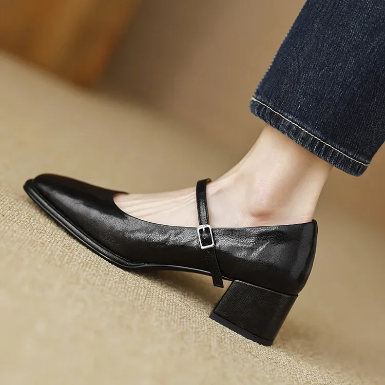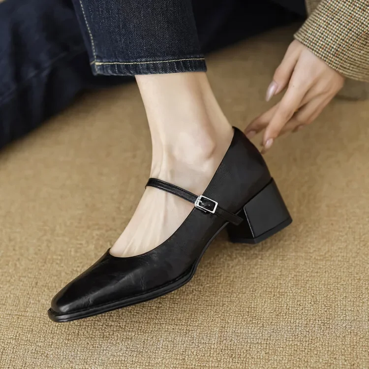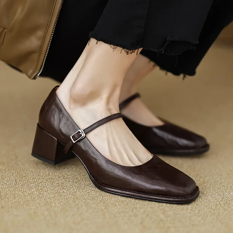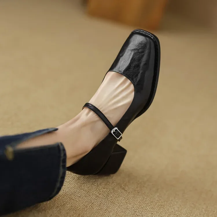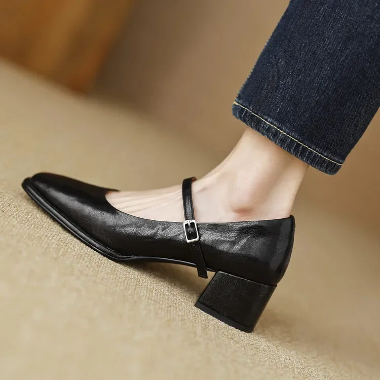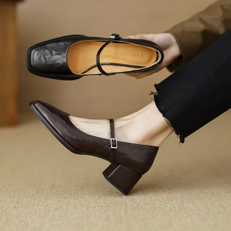 LIZAKOSHT - New retro classic Thick Heel shoes breathable and simple style with genuine leather upper, comfortable,