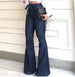 LIZAKOSHT - New Women Denim Tie Waist Flare Jeans Boyfriend Jeans Ladies High Waist Skinny bell bottom jeans Pants Autumn Wide Leg Mom Jeans