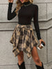 LIZAKOSHT - New Women's Nightclub Fashion Irregular Grid Tied Sleeves Fake Shirt Half Skirt