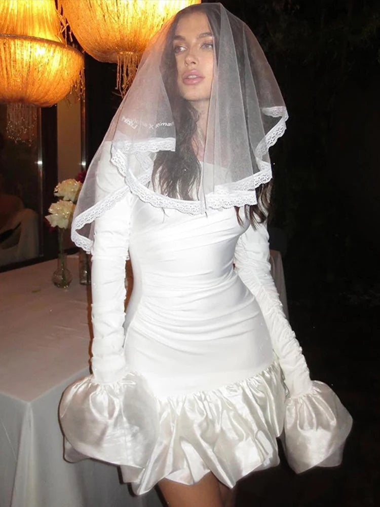 LIZAKOSHT - Off-shoulder Flower Bud Sleeve Women's Dresses Solid Color Slim Fit Pleated Short Dresses Fashion Elegant Party Beach Dress