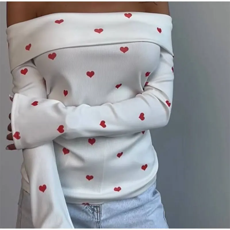 Lizakosht Off Shoulder Long Sleeved Heart Knitted Sweater Women Backless Chic Loose Warm Pullover Autumn Elegant Lady Party Jumper